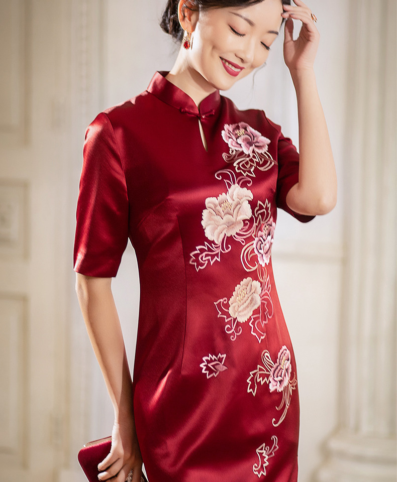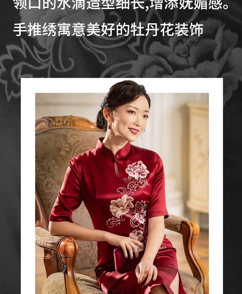 上海逸红颜春庭月2025春季新款弹力绒蕾丝暖感改良旗袍仙女连衣裙