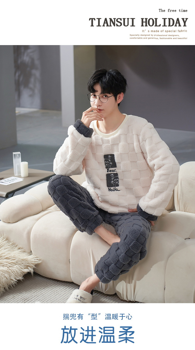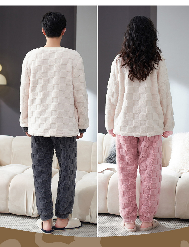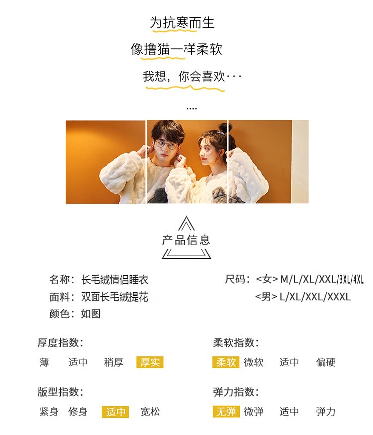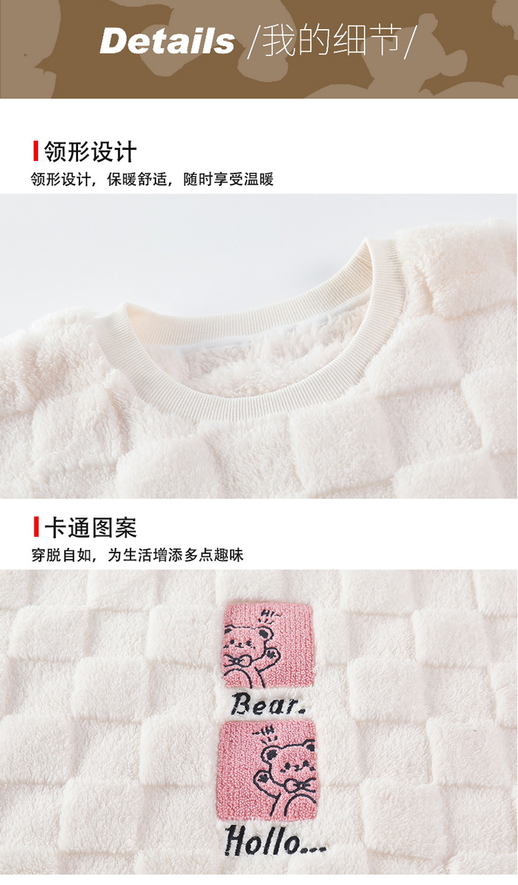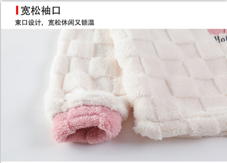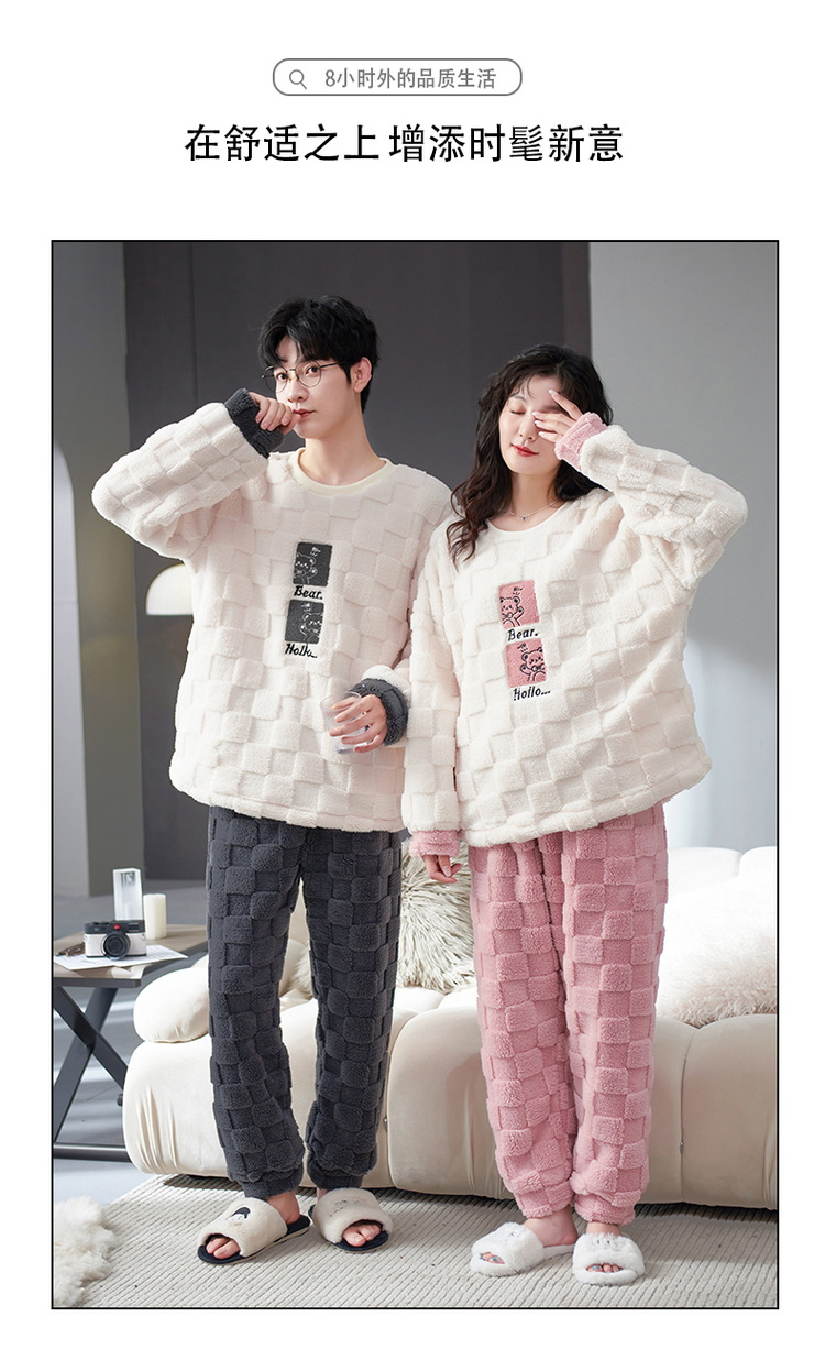 秋冬男女加绒睡衣裤 可爱卡通圆领套头家居服加厚情侣装套装