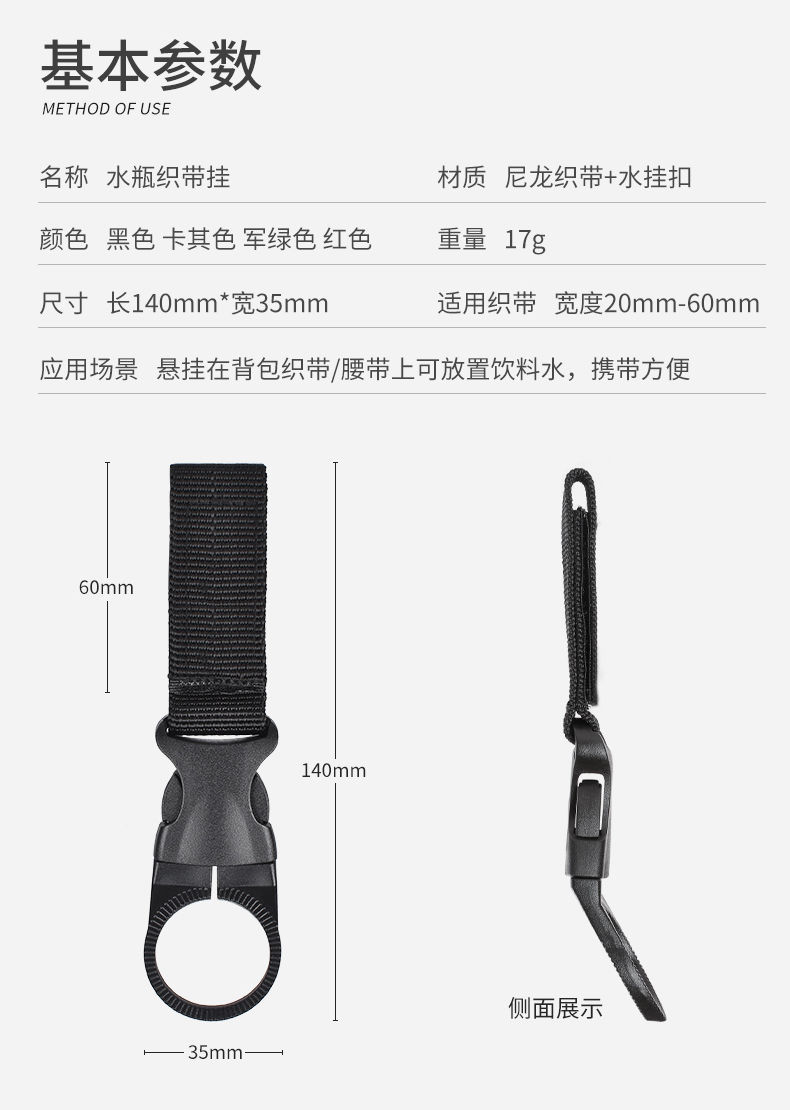 户外饮料瓶矿泉水挂扣尼龙织带挂多功能登山便携工具