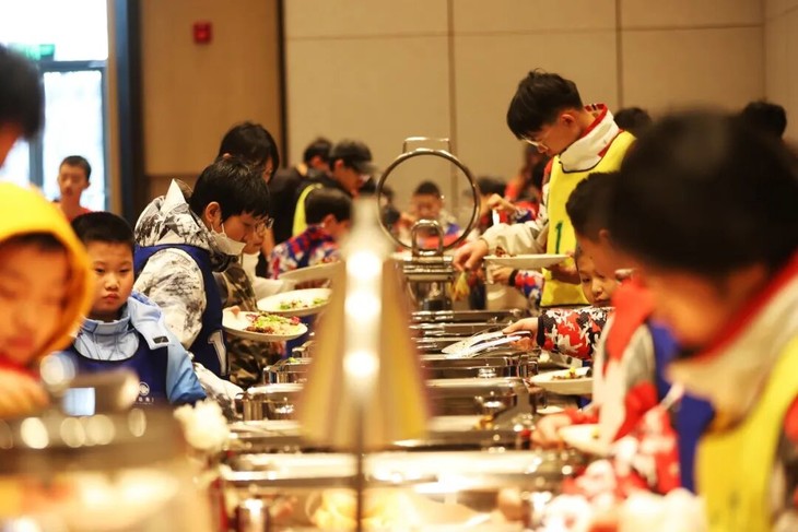我们冬令营在酒店用餐(自助/桌餐),集团直供新鲜安全食材,专属定制学员餐,注重荤素搭配,营养均衡,单独用餐区,避免等待和拥挤。