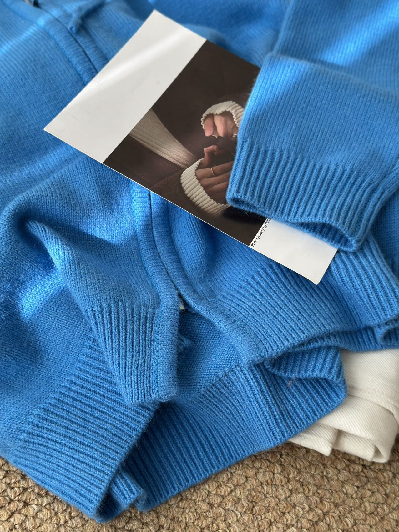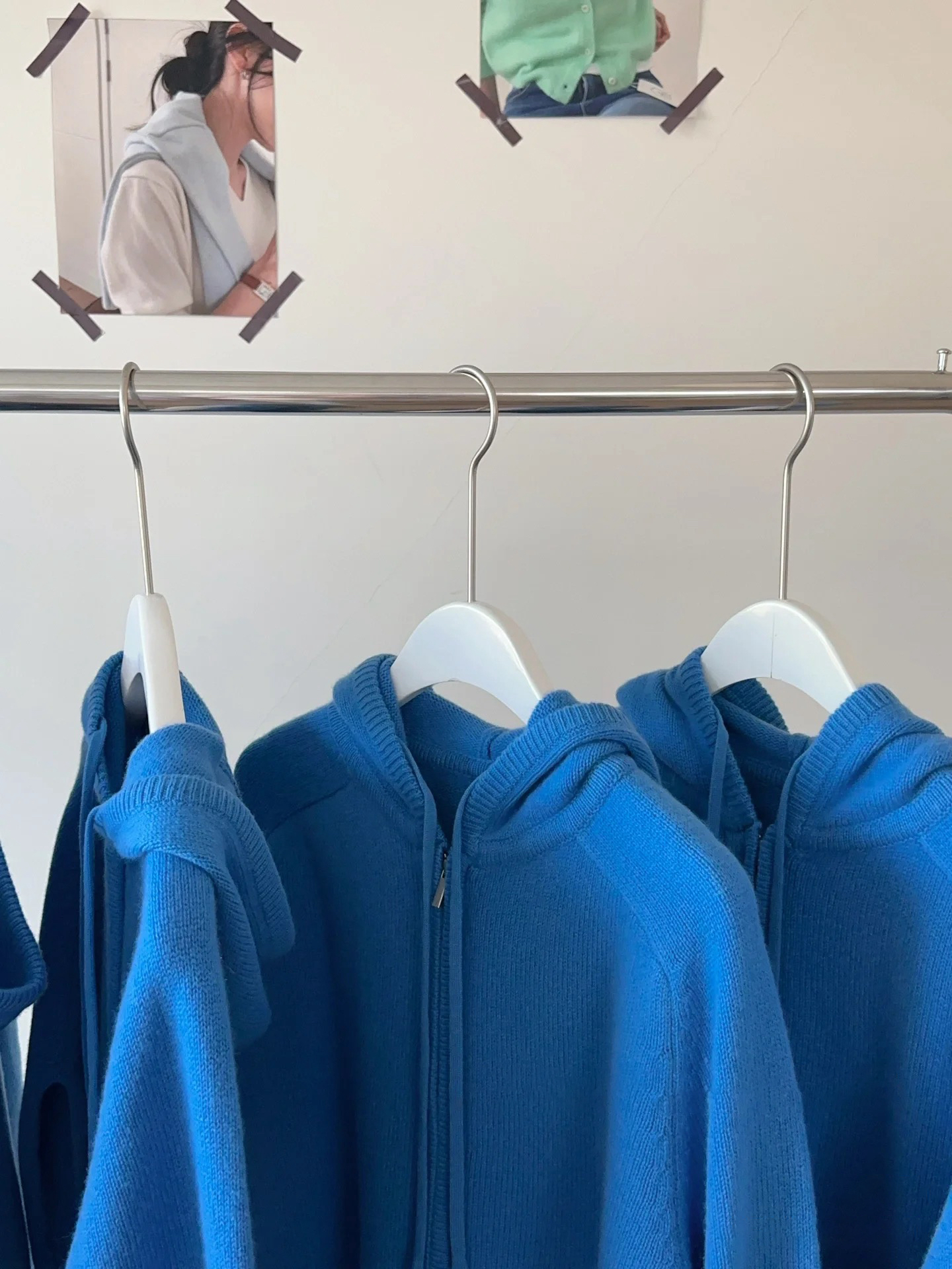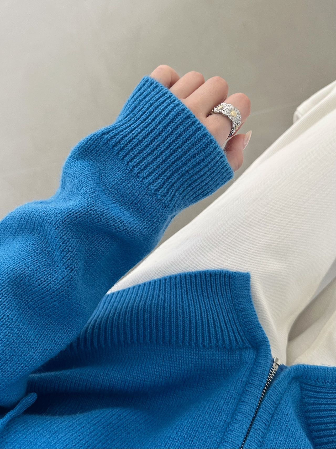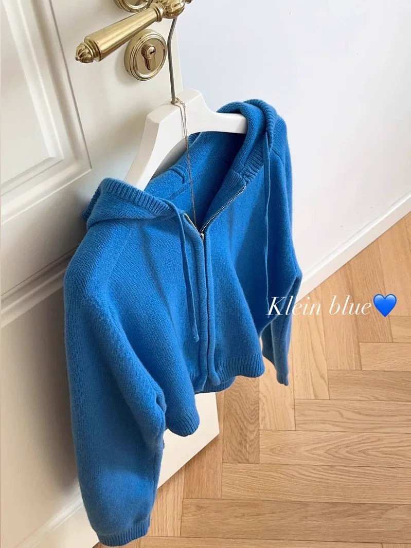 【克莱因蓝拉链连帽针织衫】自带滤镜显白 15%羊毛 软糯细腻