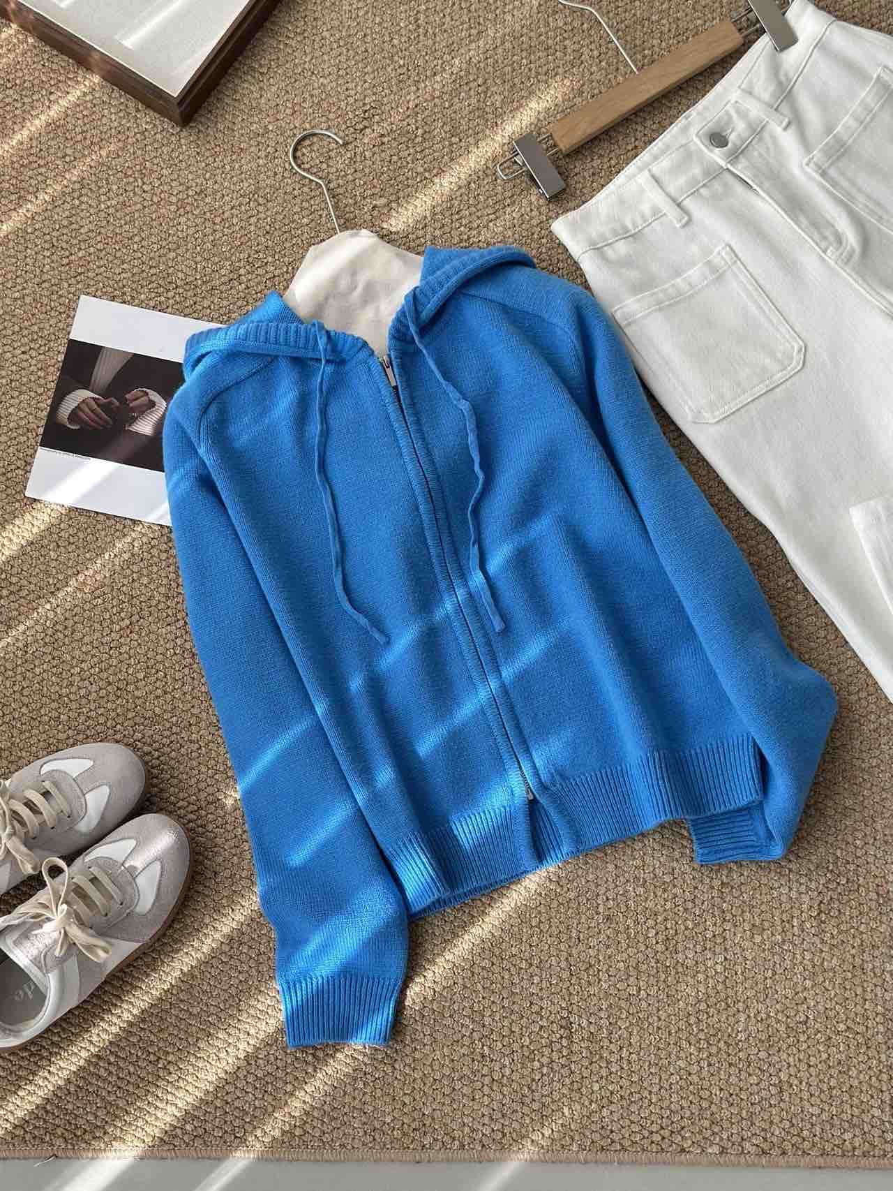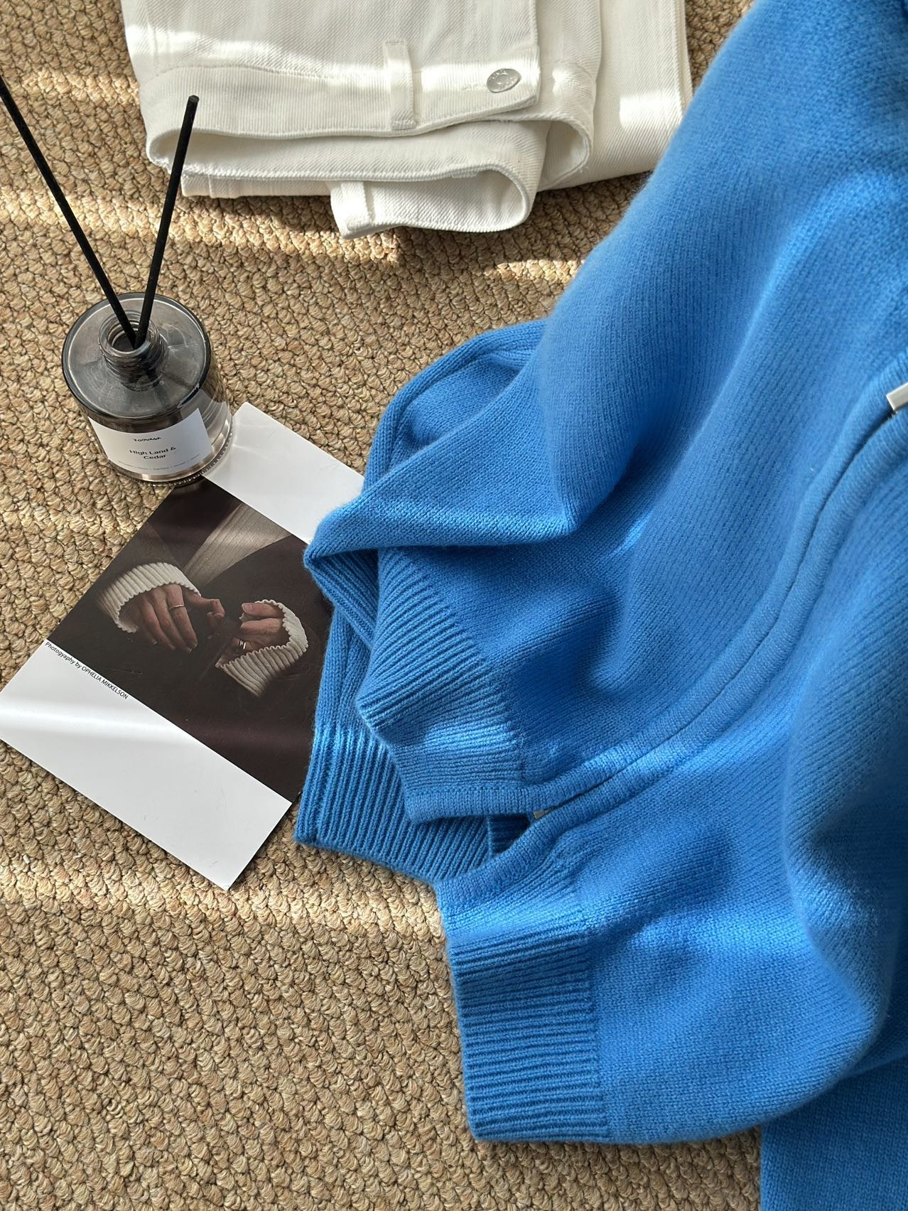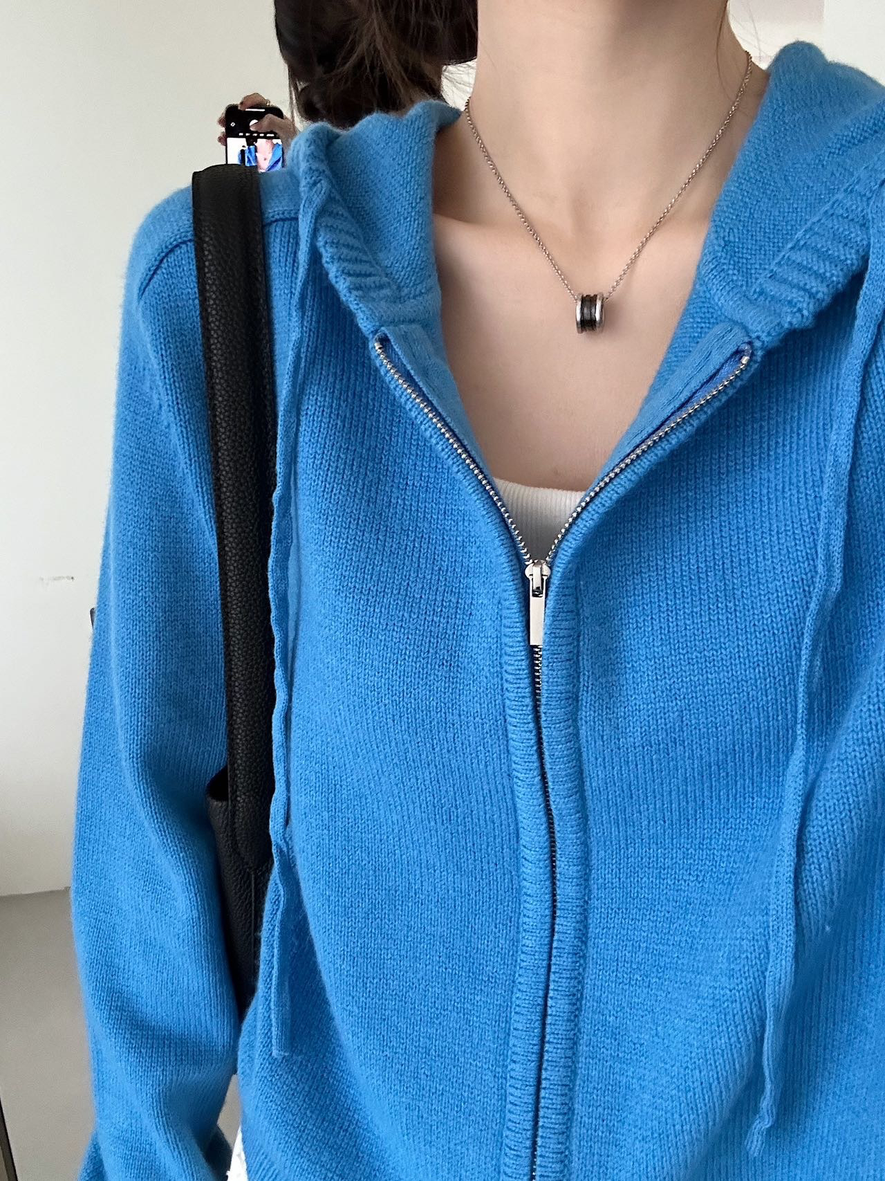 【克莱因蓝拉链连帽针织衫】自带滤镜显白 15%羊毛 软糯细腻