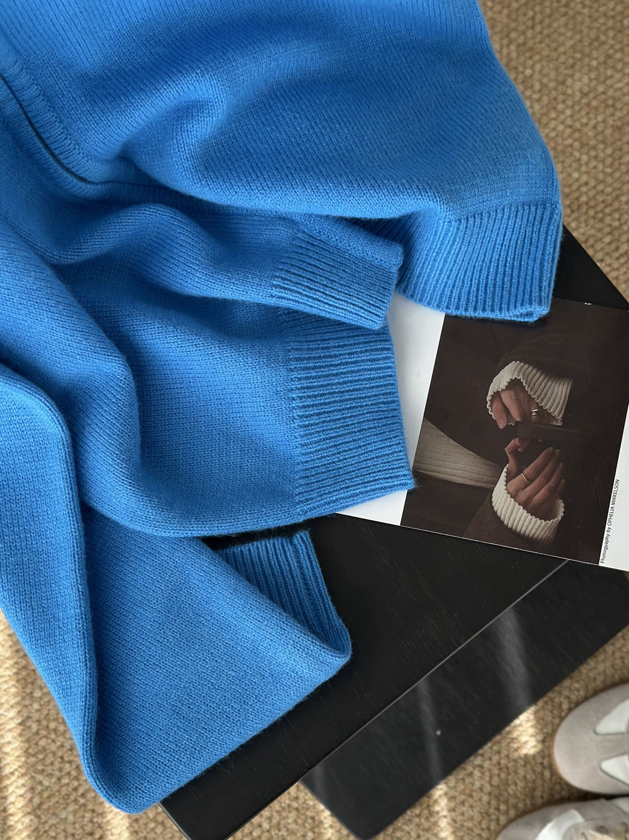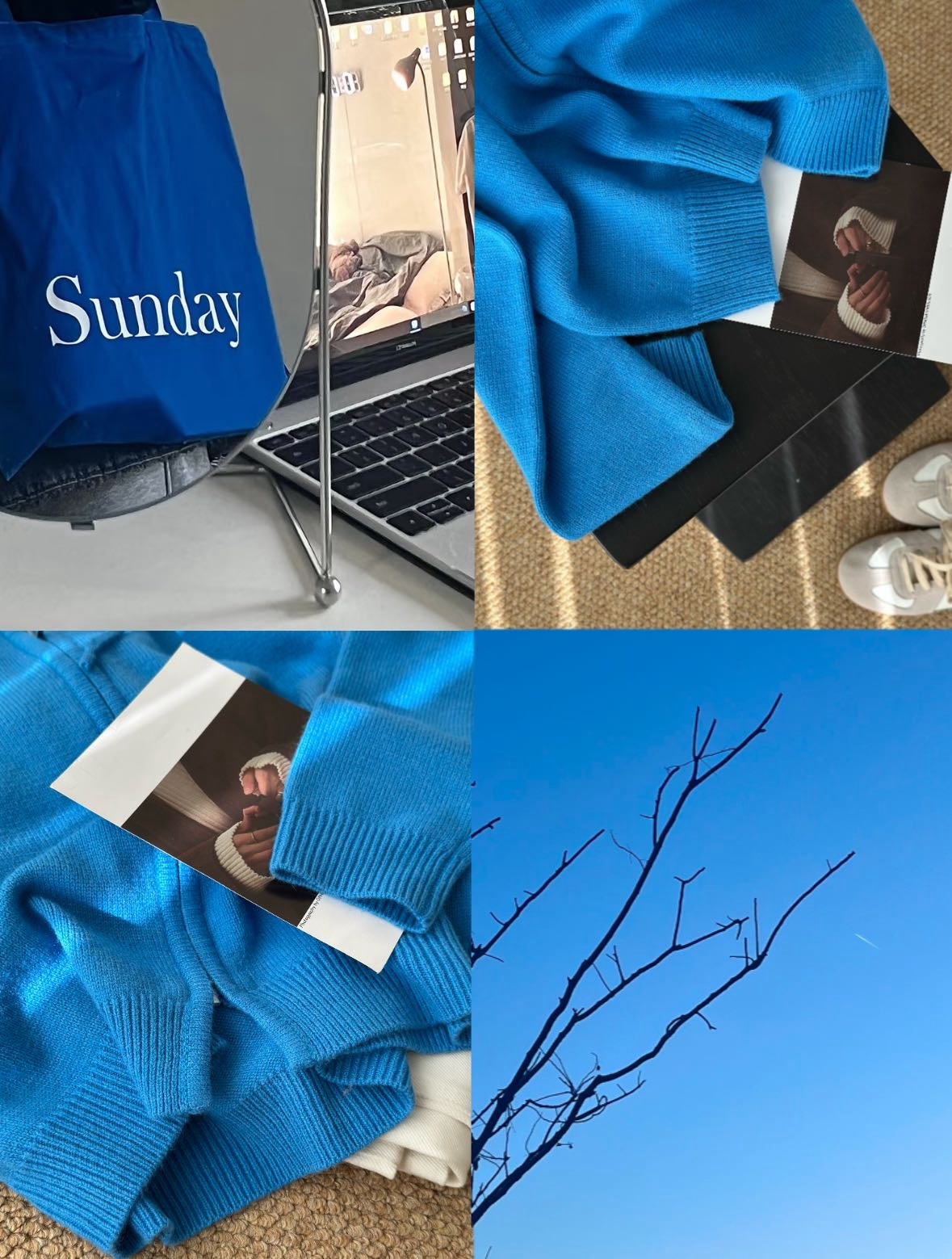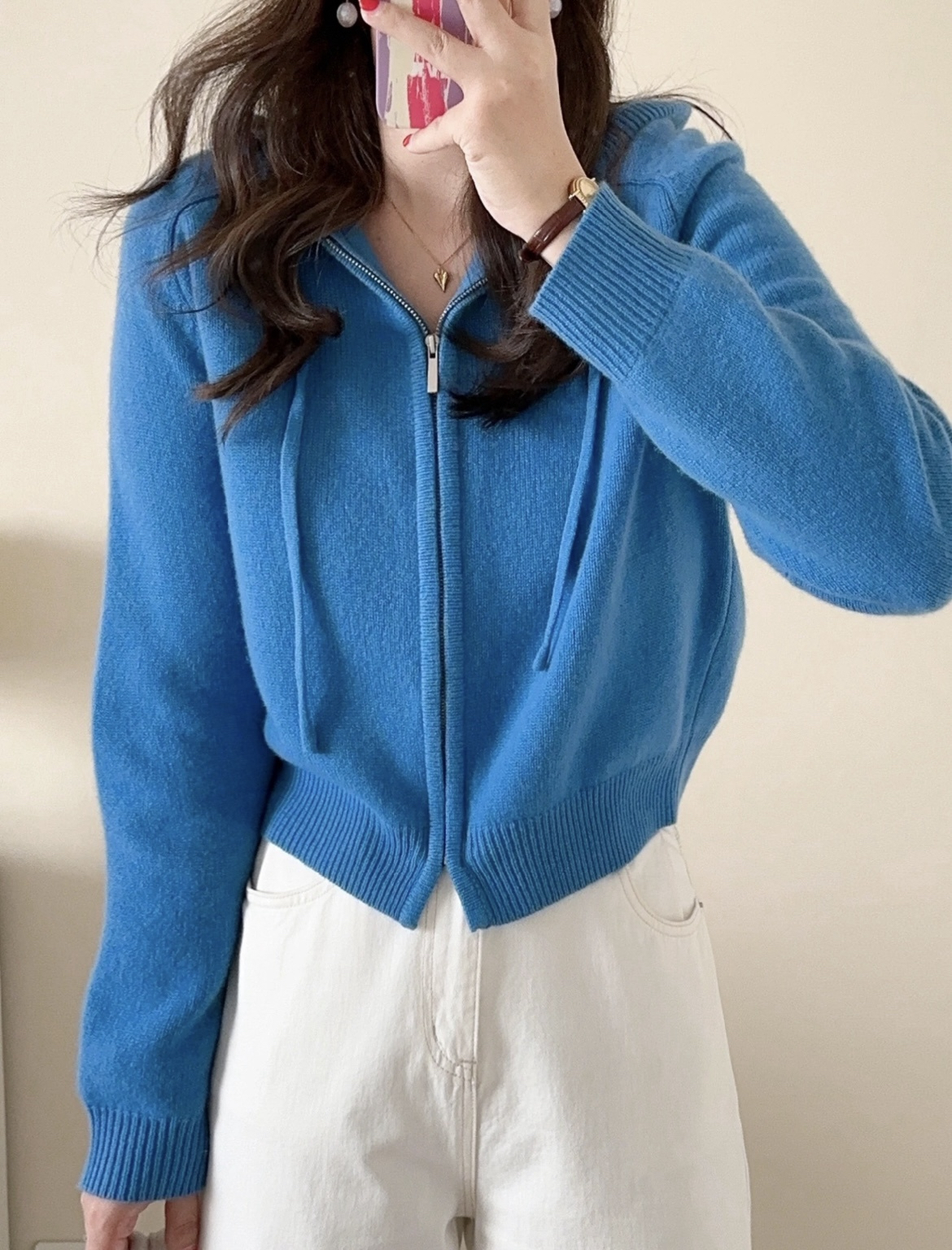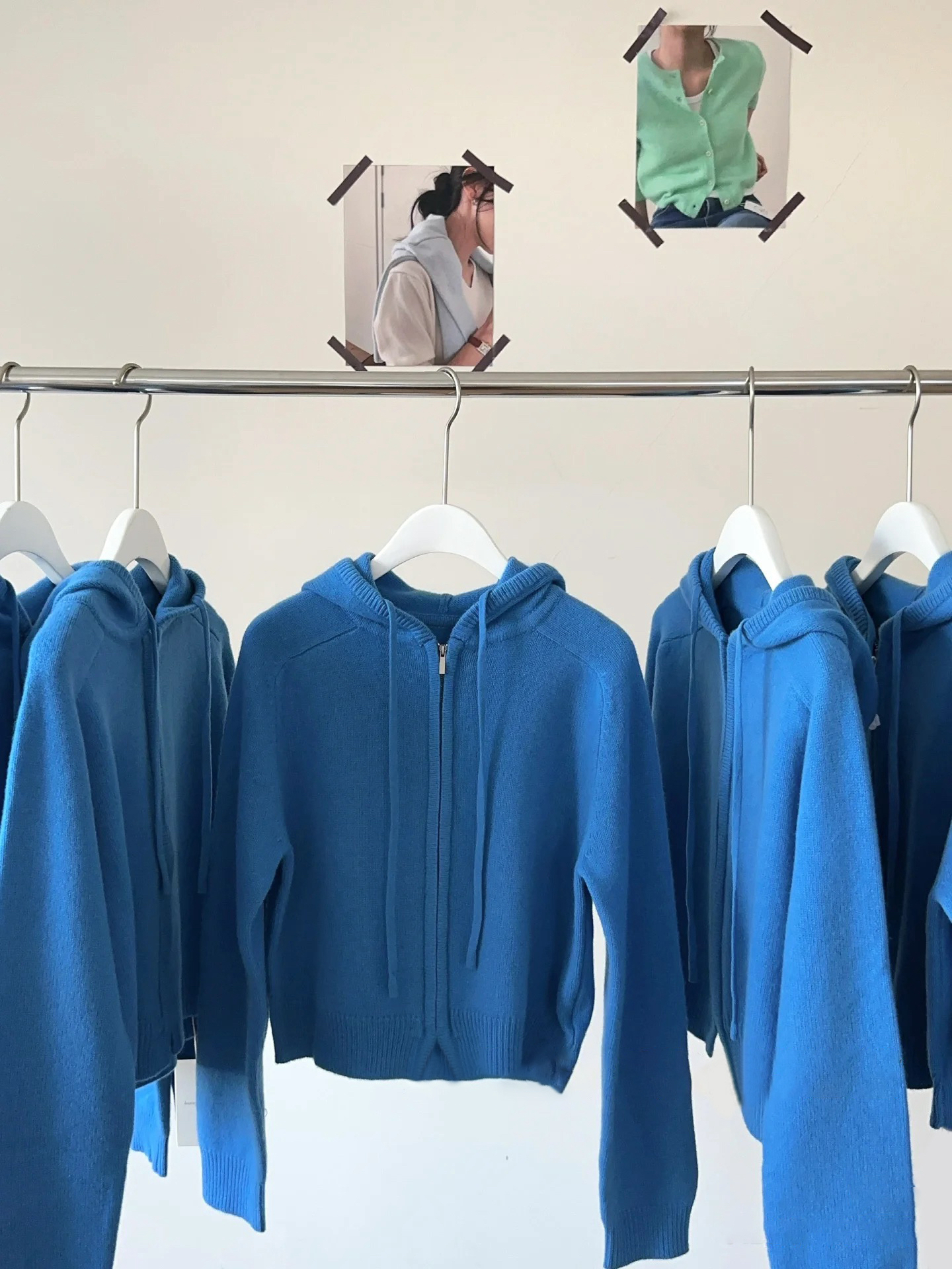 【克莱因蓝拉链连帽针织衫】自带滤镜显白 15%羊毛 软糯细腻