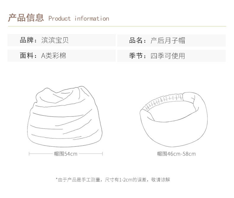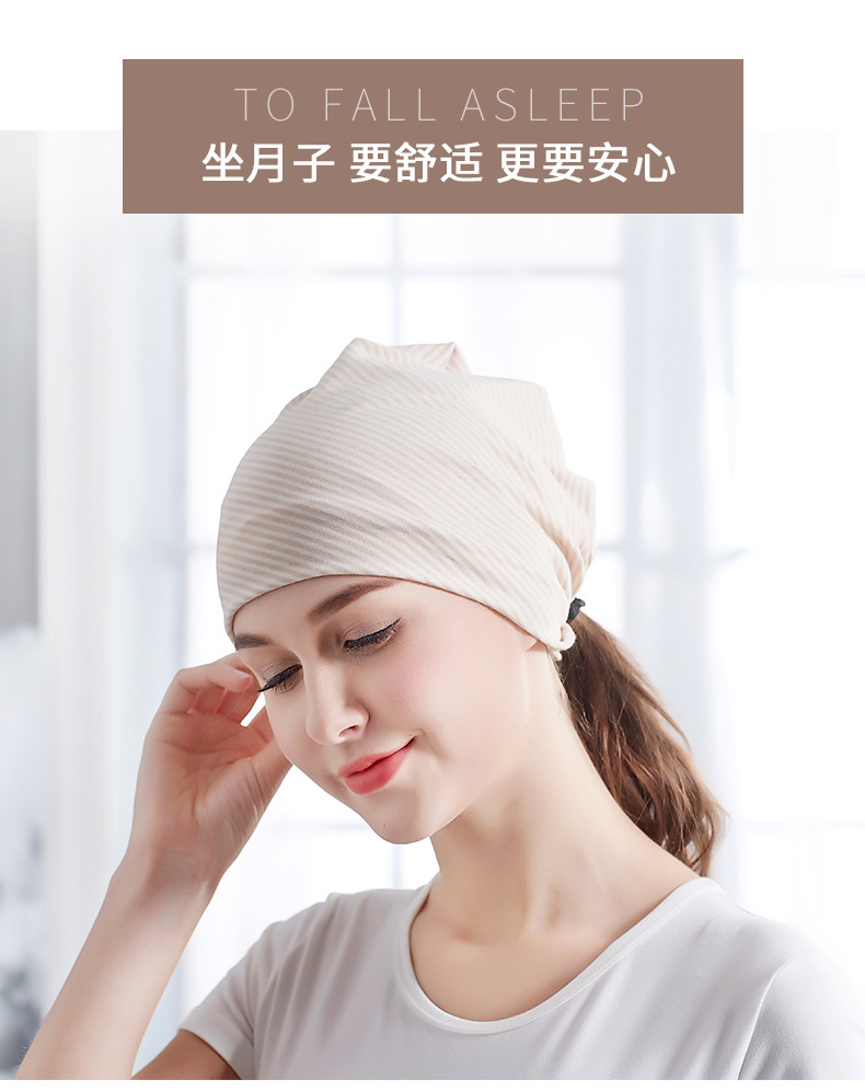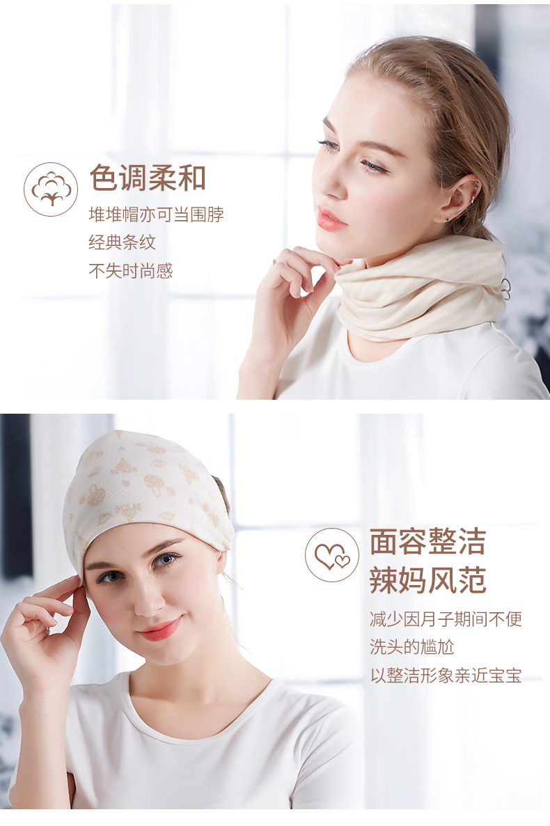【坐月子 要舒适更要安心】A类彩棉产后坐月子帽子春秋冬季孕妇头巾产妇帽防风时尚春夏四季透气