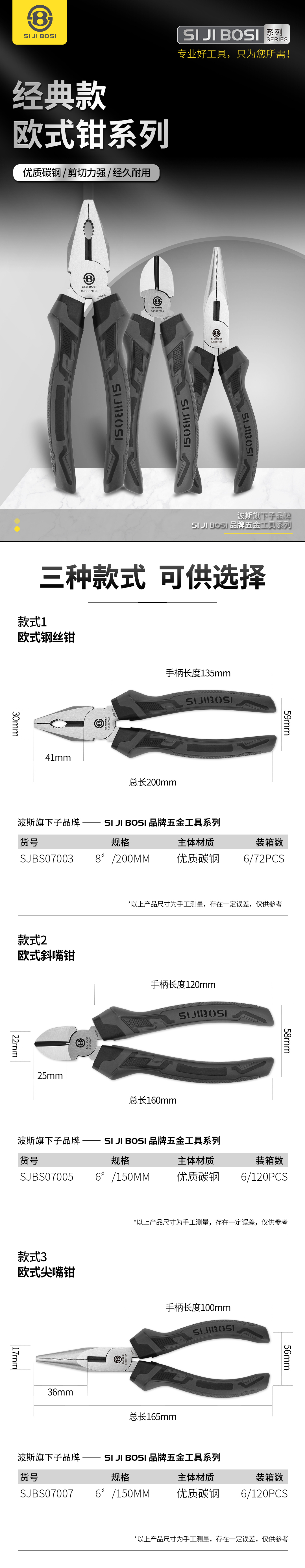 波斯 欧式尖嘴钳 6〞/150mm SJBS07007