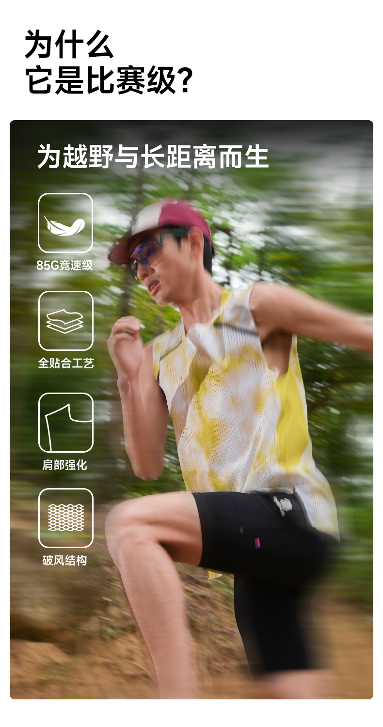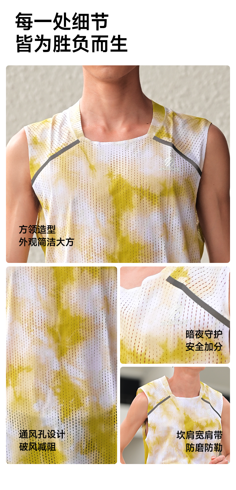 【春上新】引擎鸟男款浮光流彩运动坎肩背心马拉松跑步防磨上衣
