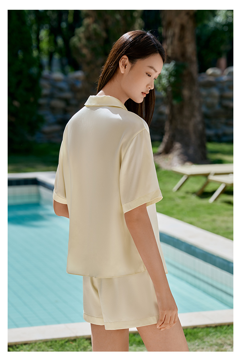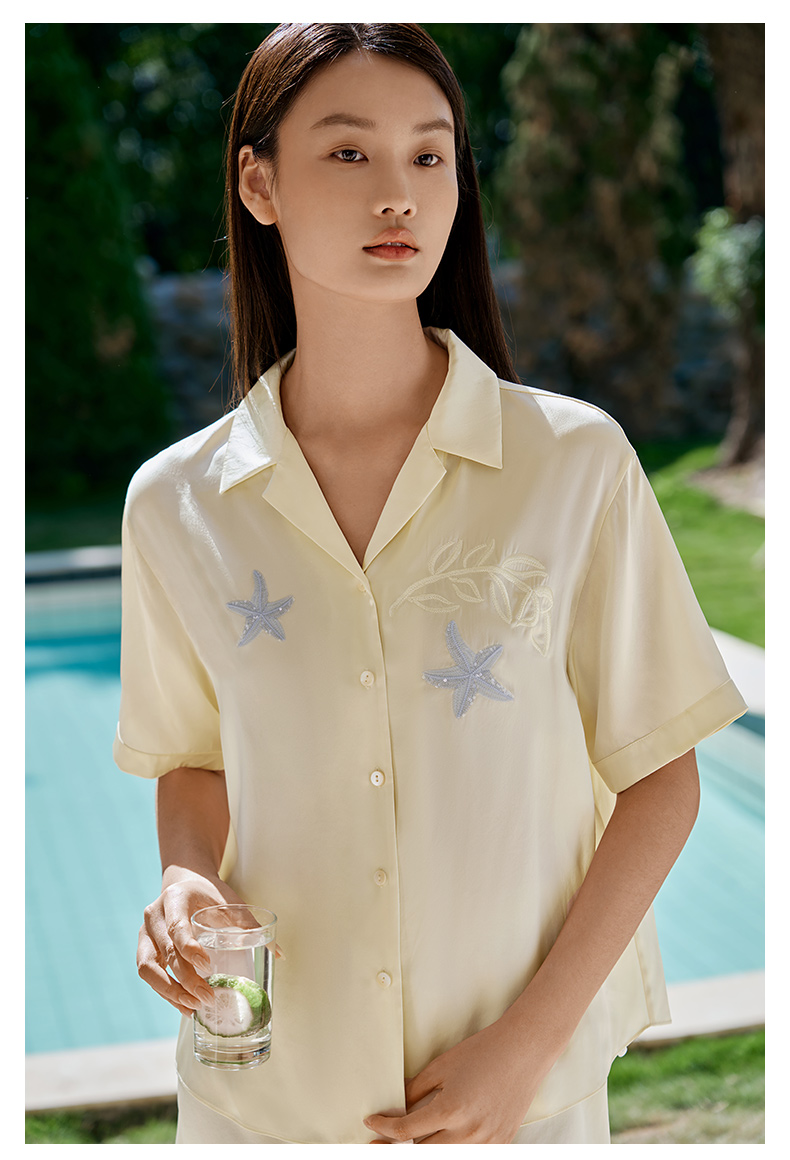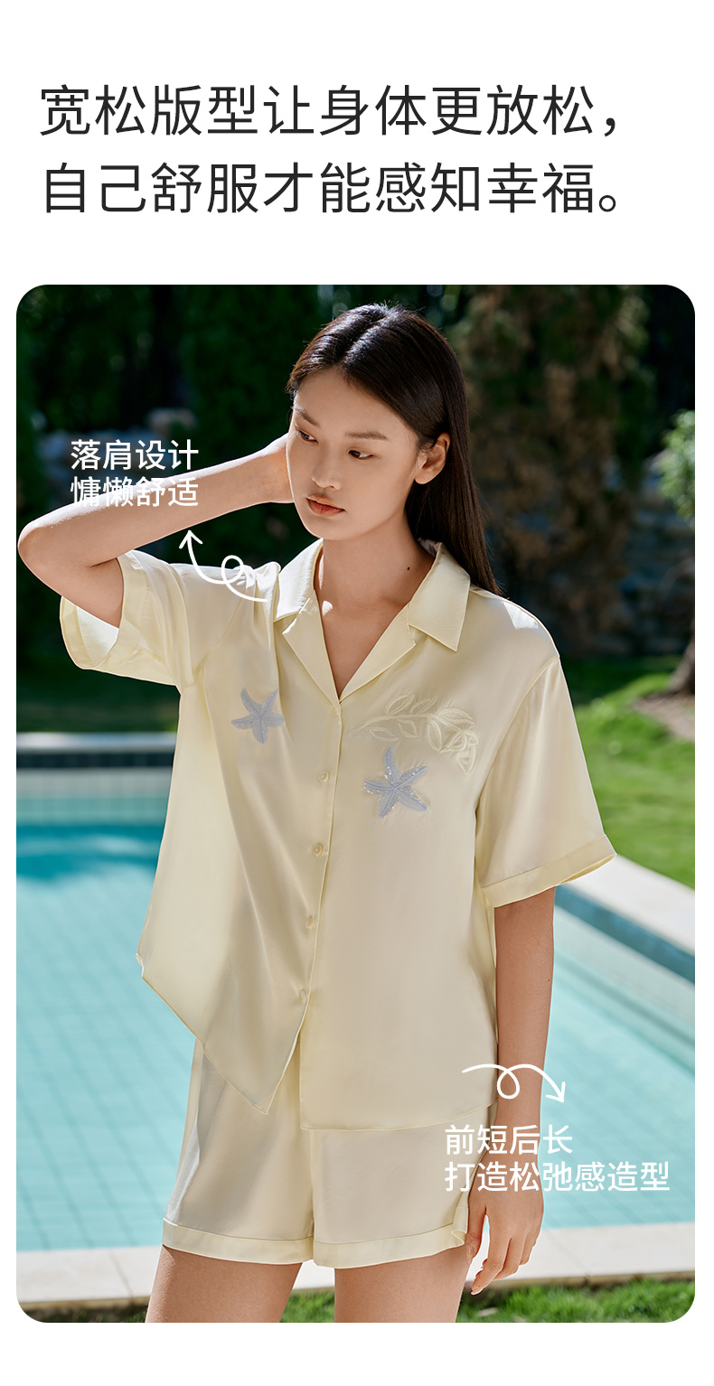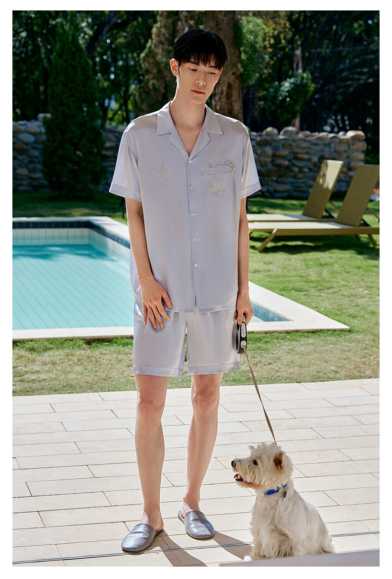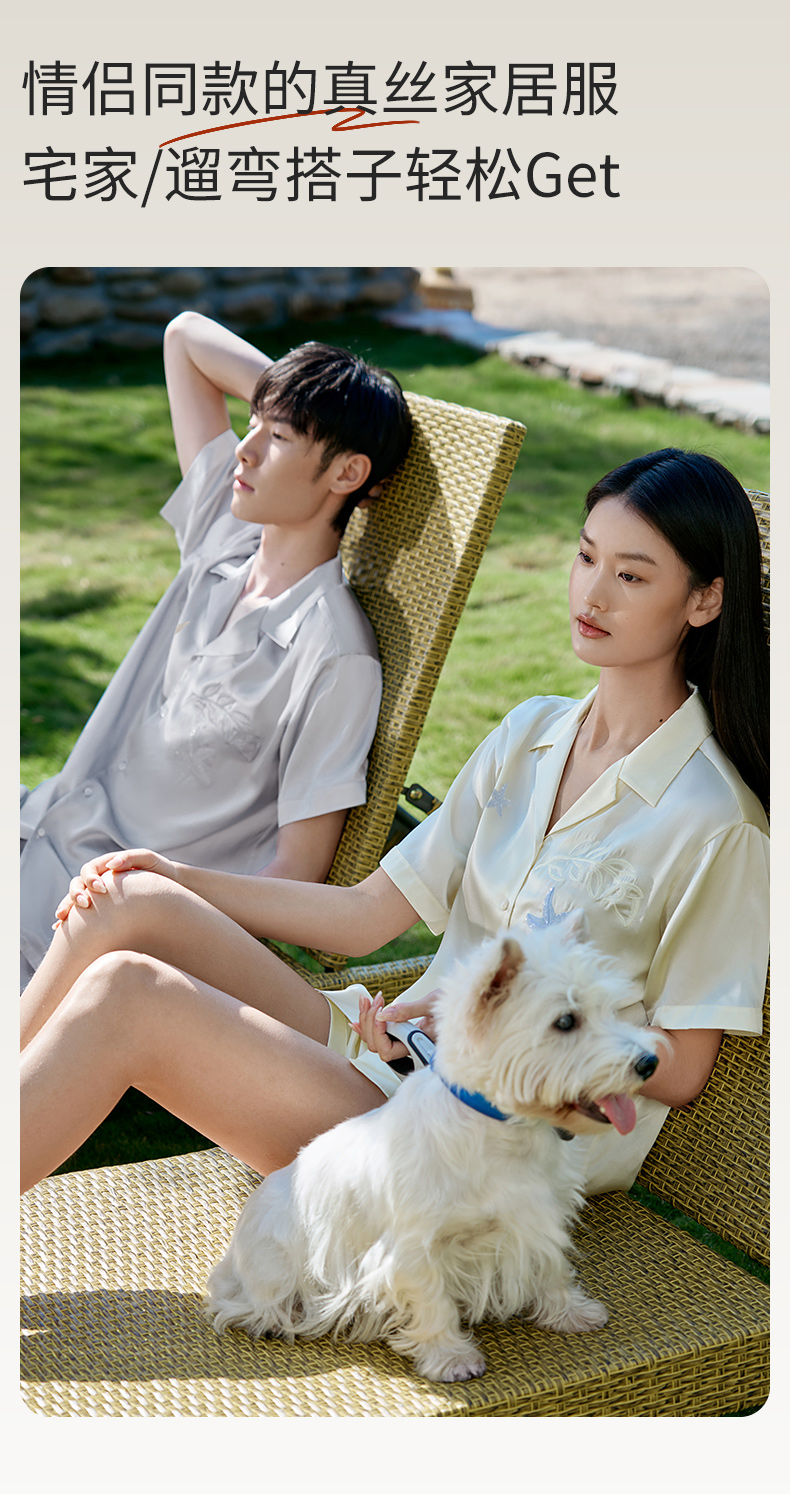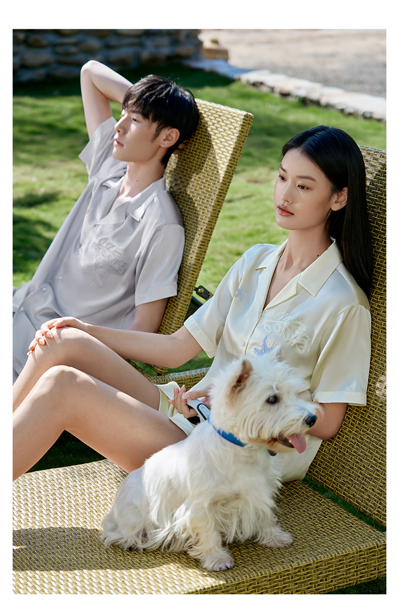 真丝睡衣女短袖短裤夏海洋系列情侣男可外穿100%桑蚕丝家居服套装 YSFFB408/YSMFB402