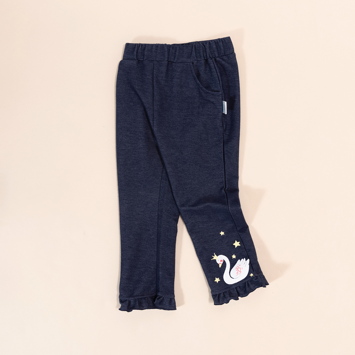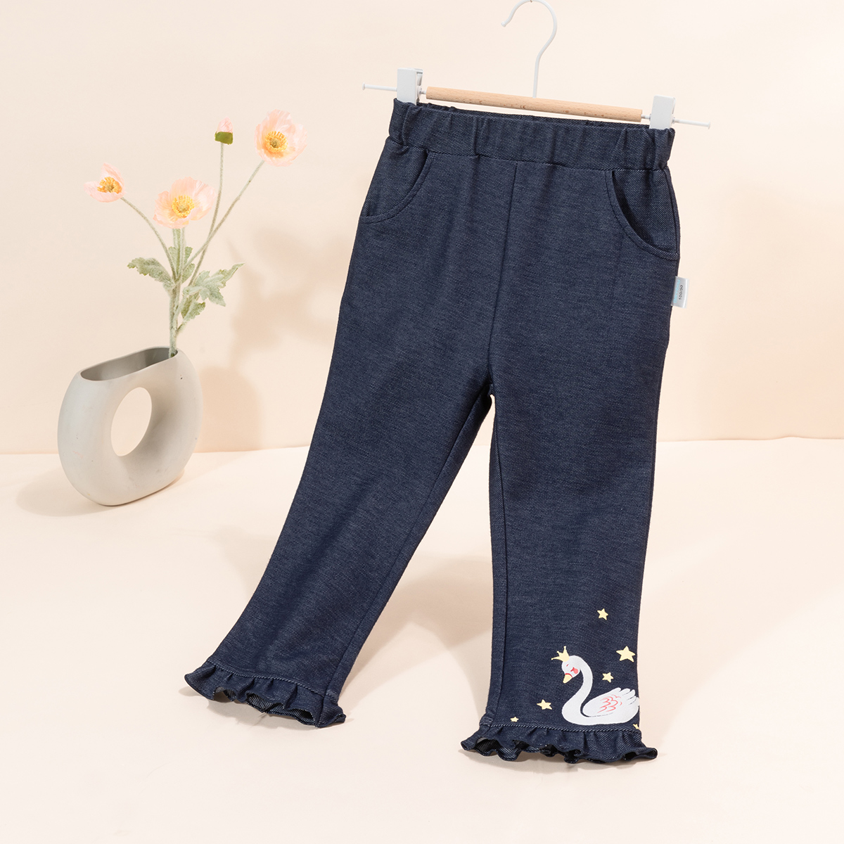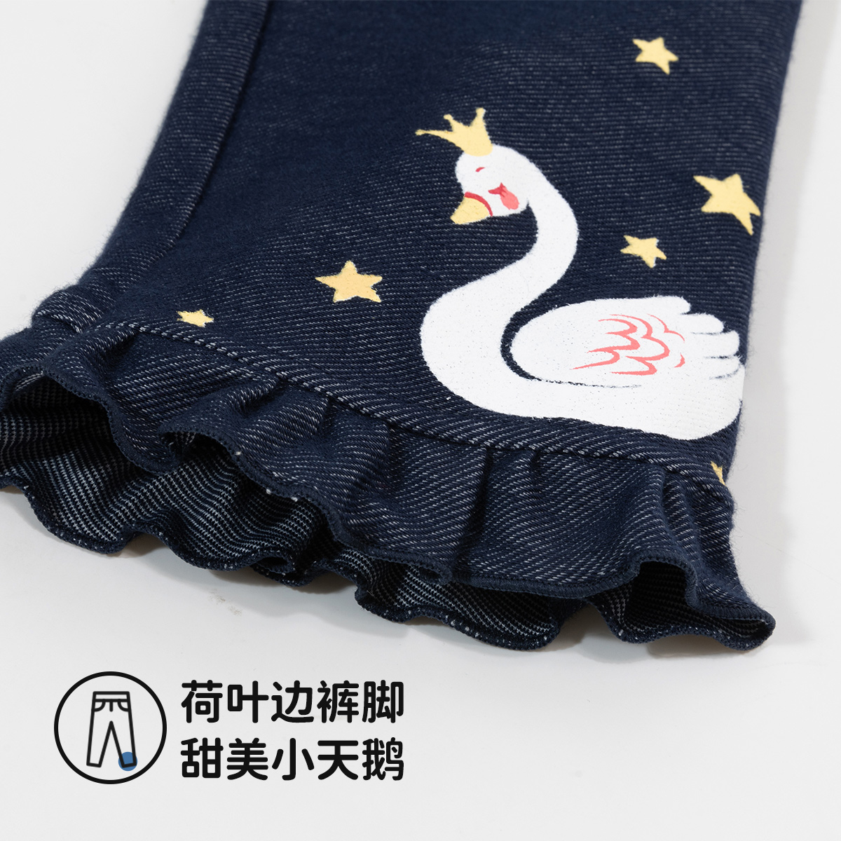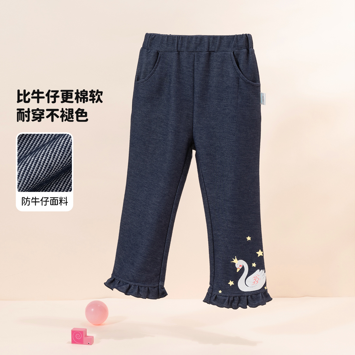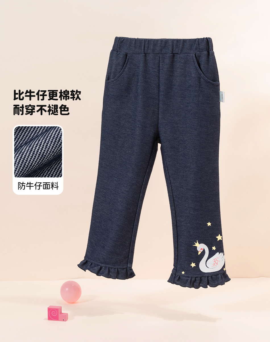 贝贝怡【花边脚口】秋季新款女童仿牛仔长裤舒适百搭休闲裤中小童直筒裤ZB3DK017