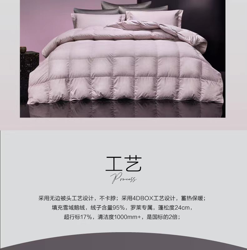 【6F】罗莱 尚 超柔无边鹅绒被-春 鸢尾粉/烟暮灰