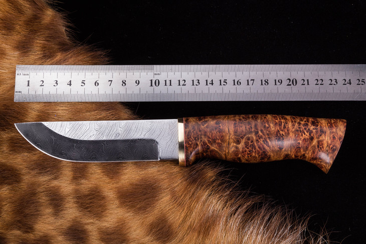 花梨瘿木刀柄,精心打磨抛光后,呈现出禅妙的纹理,贴手极富温润感。