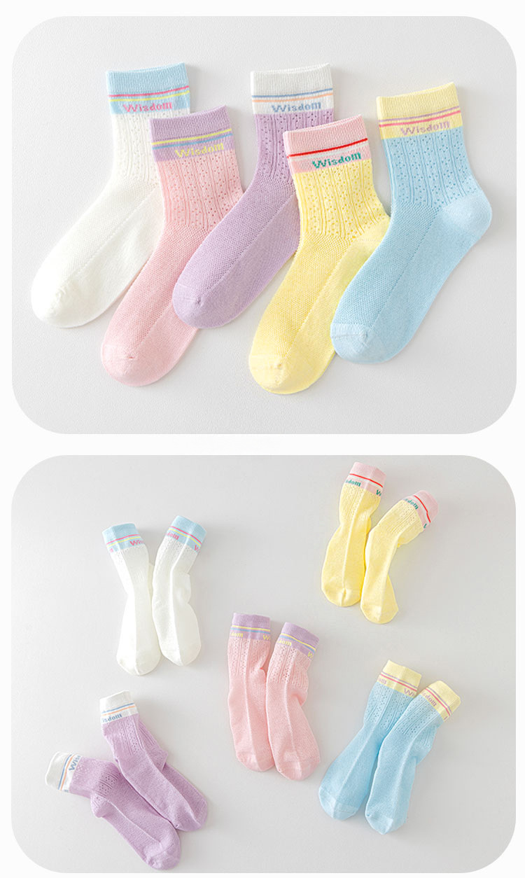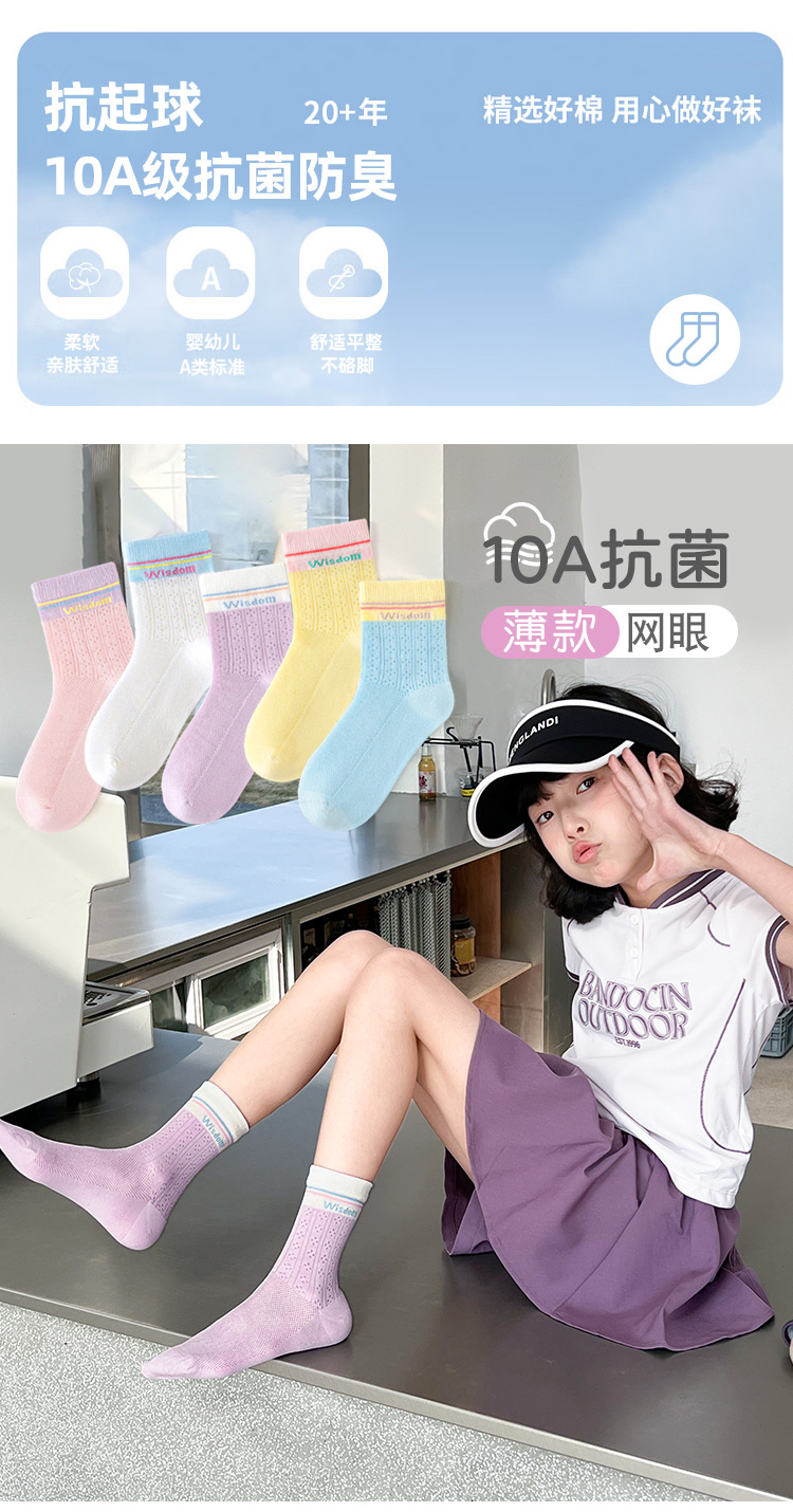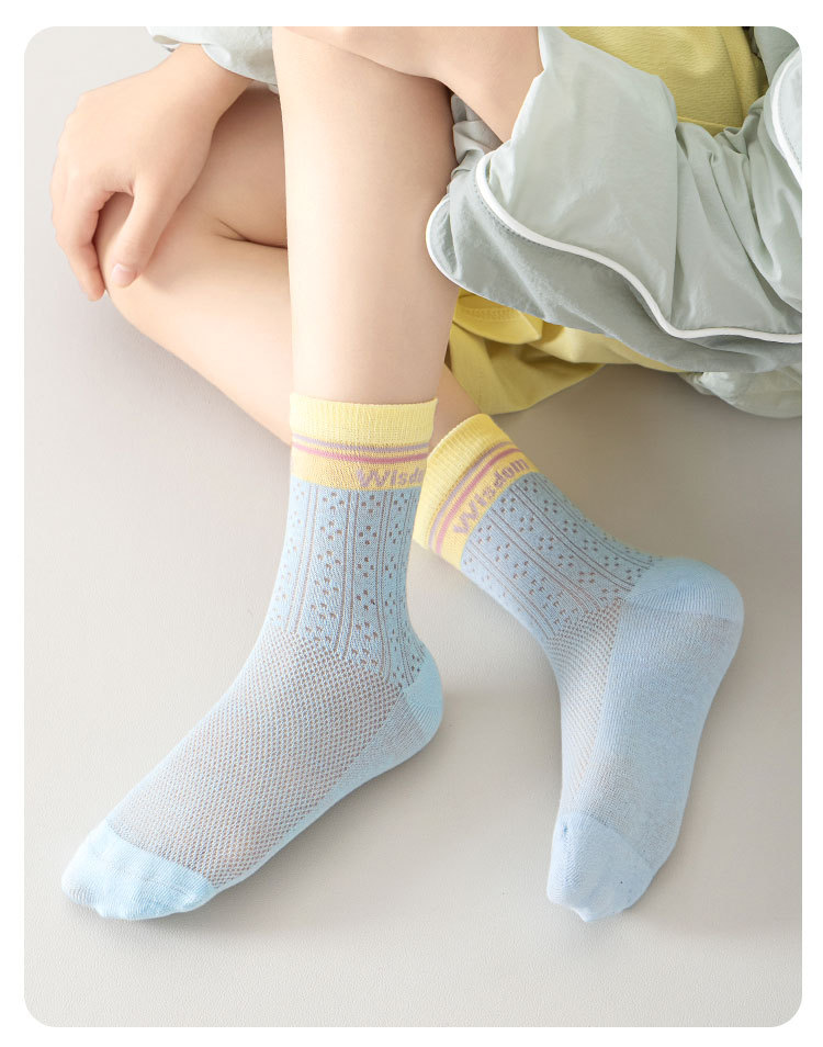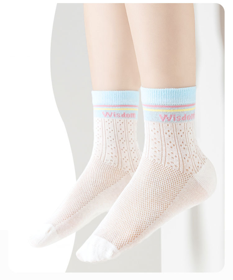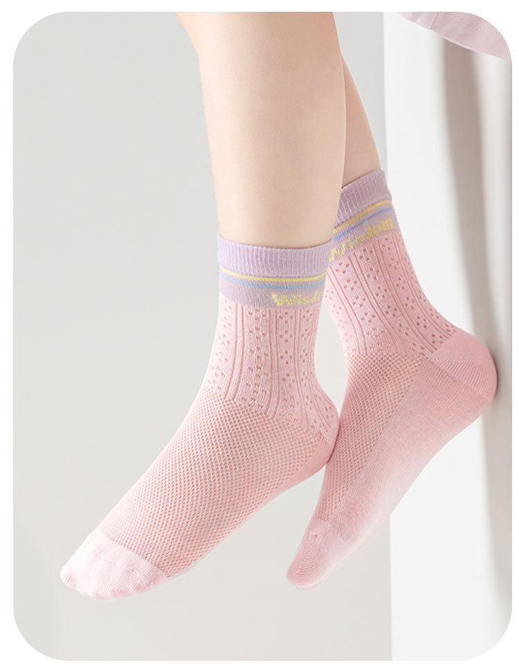 5双29.9包邮!26新款春夏薄款透气抗起球潮袜网眼男女童中筒A类无骨棉袜 25-42码