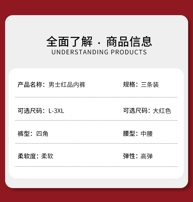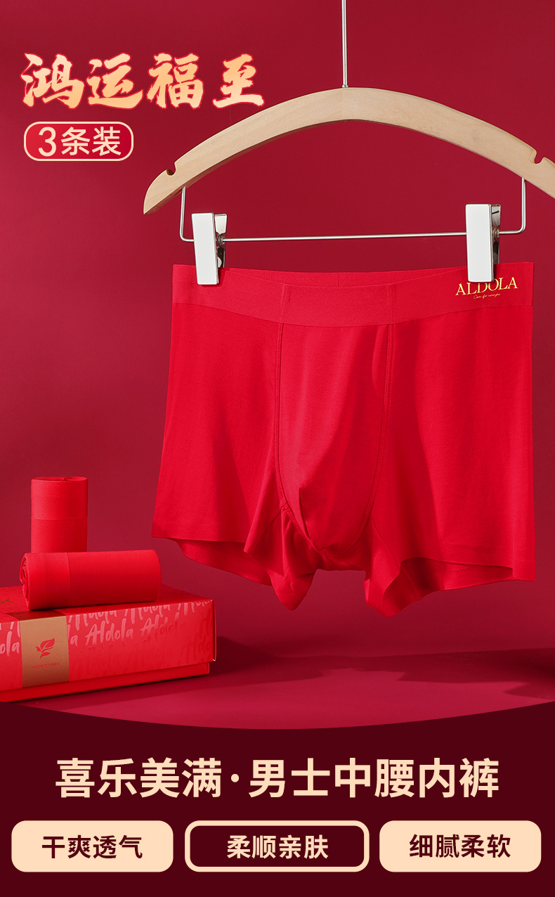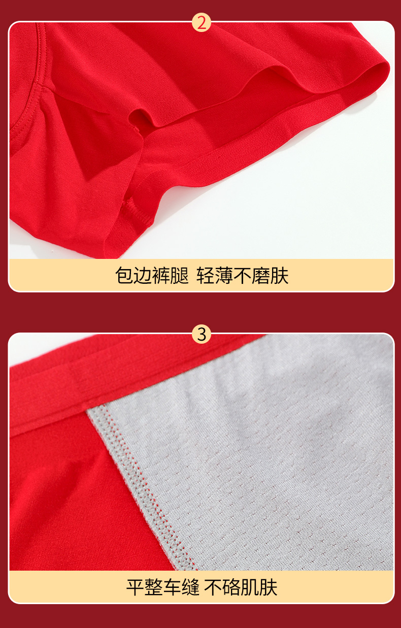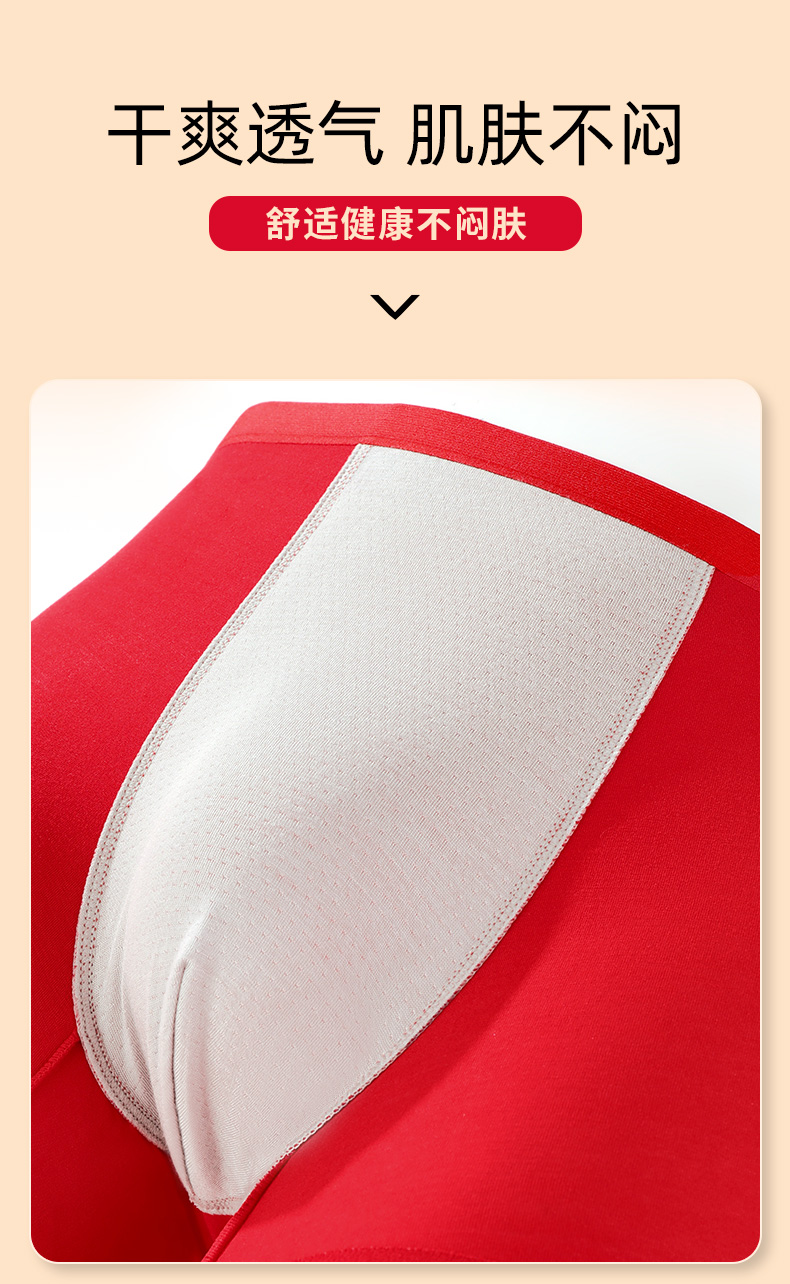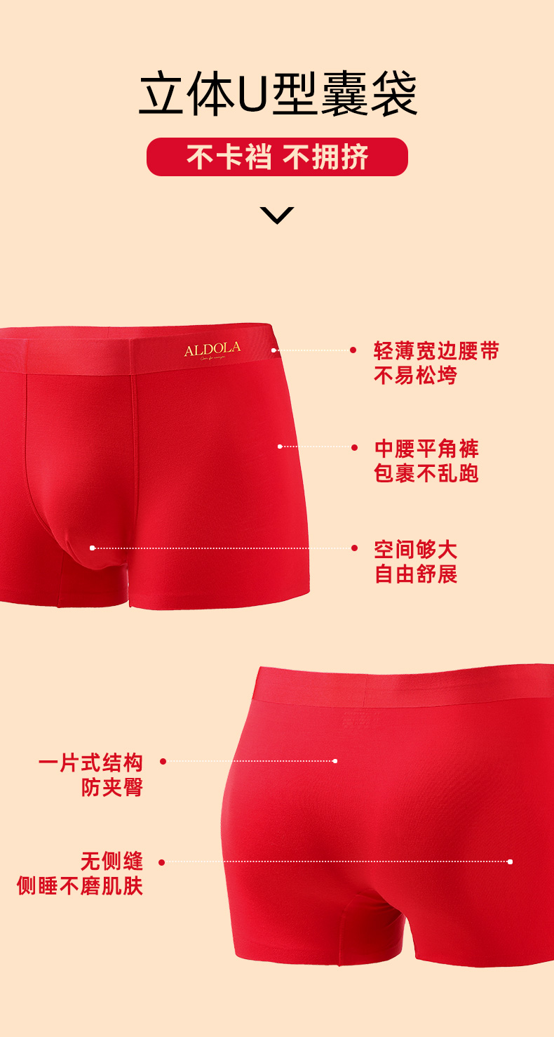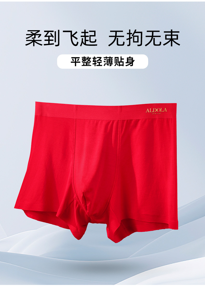 雅黛丽本命年男士内裤大红色结婚礼物平角四角短裤高弹透气短裤头
