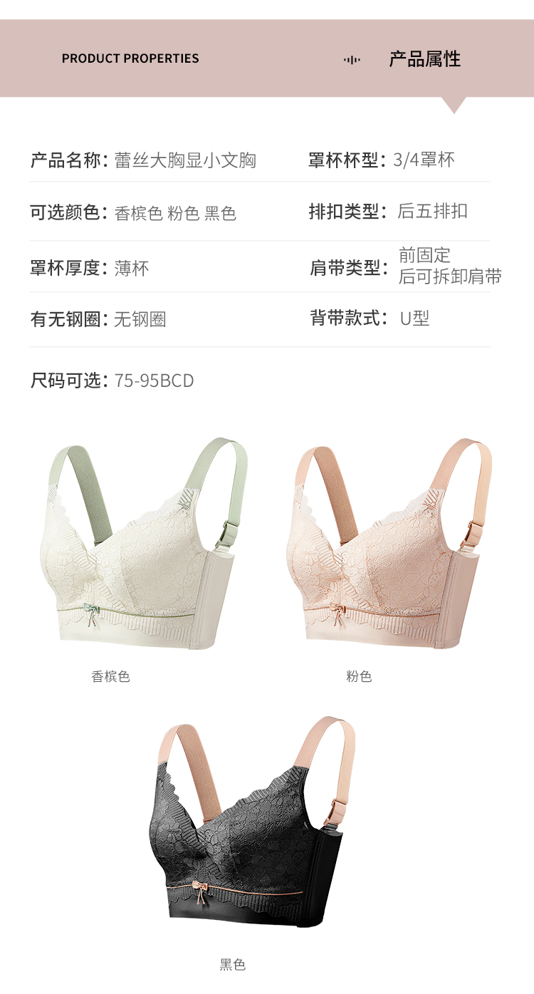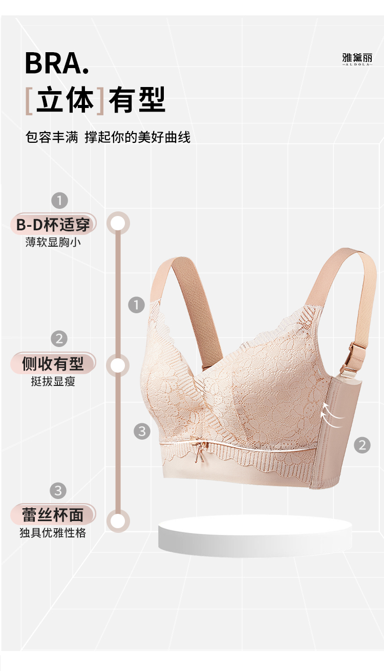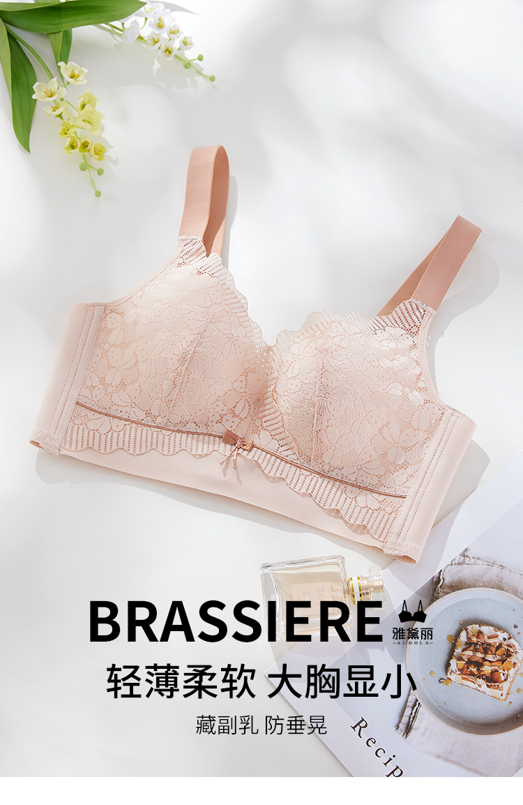 雅黛丽内衣女夏季薄款大胸显小胸文胸收副乳防下垂调整型美背胸罩