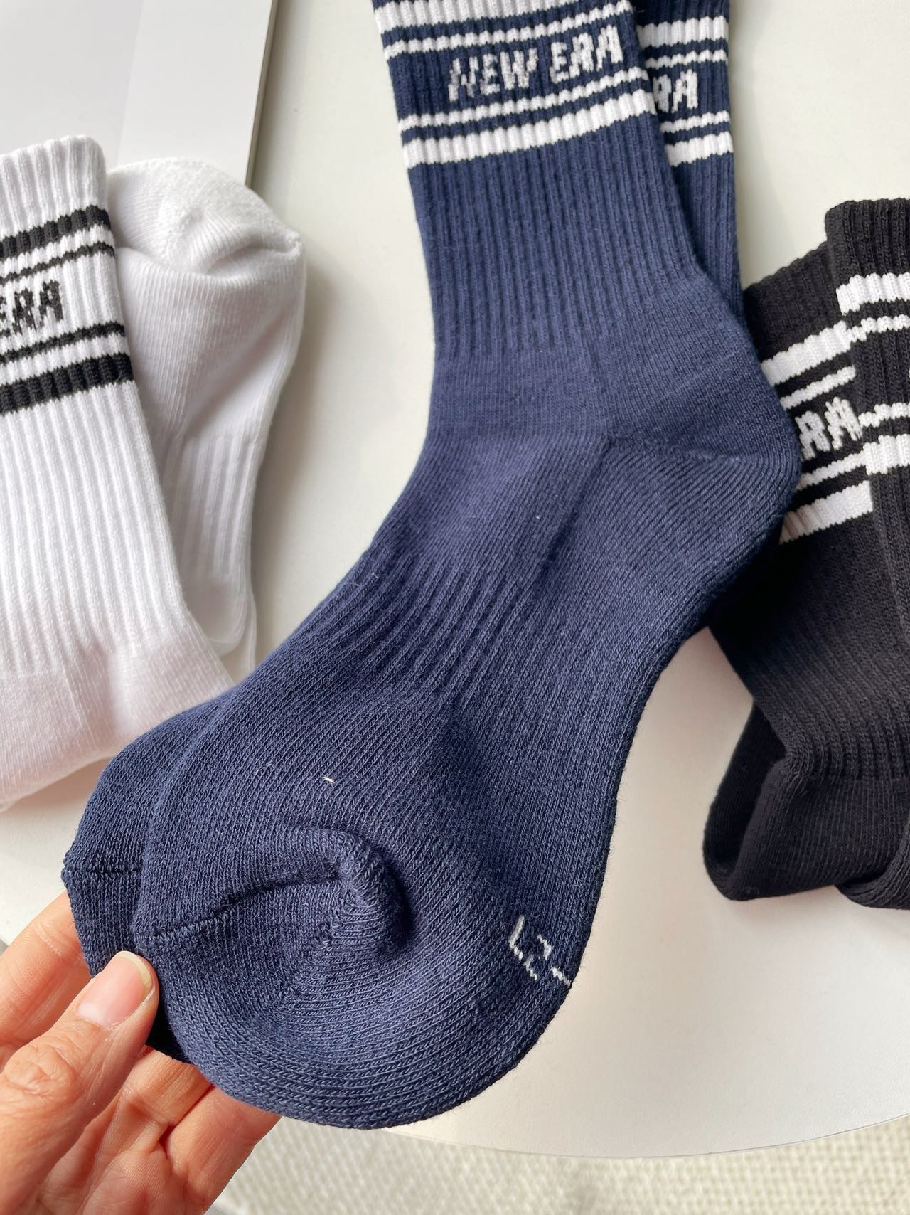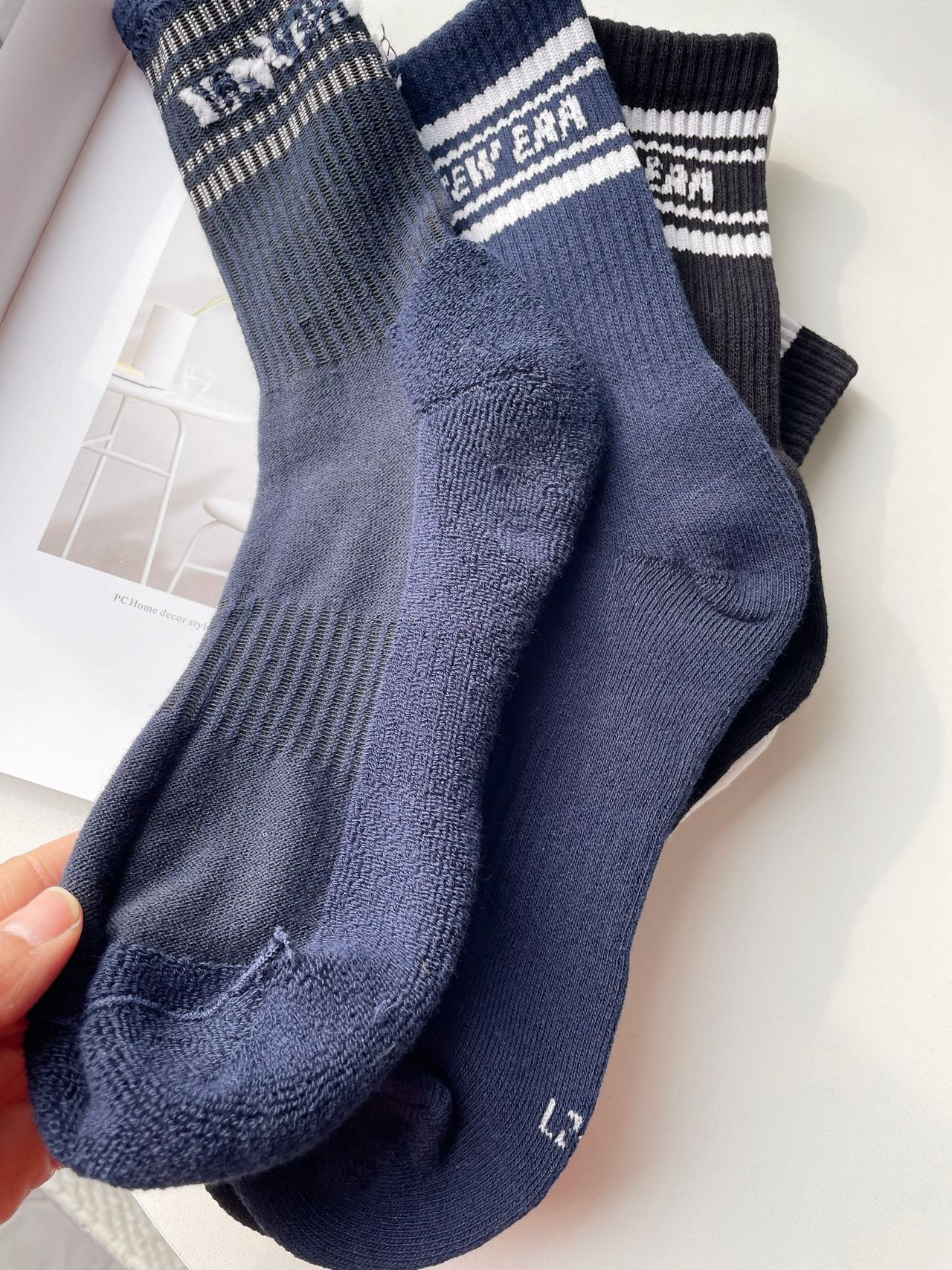 毛巾加厚的,精梳棉的,平时打球运动户外都可以穿,出汗不臭脚,不闷脚。尺寸足,不担心顶脚,拿到手是沉甸甸的一双好袜子
