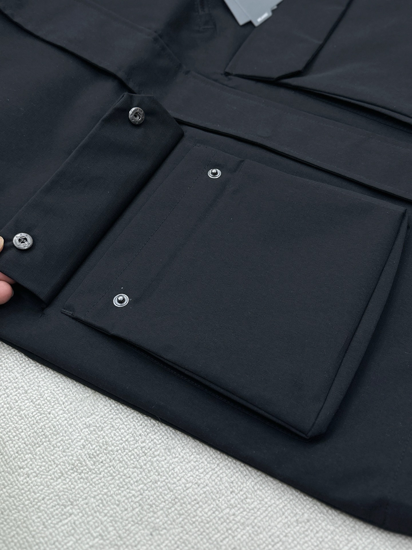下摆两个超大口袋。非常实用,进行野外运动时可容纳必需装备。