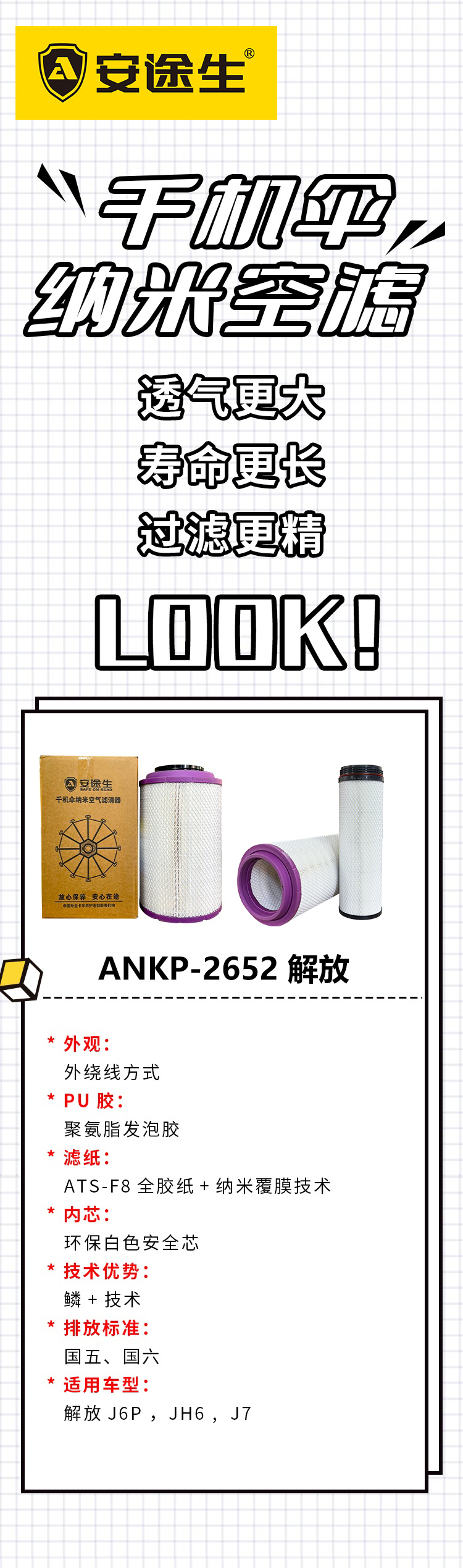 安途生2652纳米解放千机伞空气滤芯长效10万公里J6JH6J7