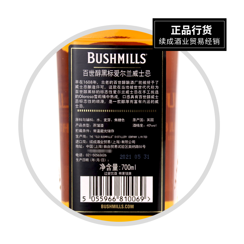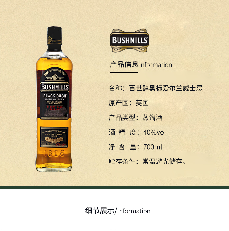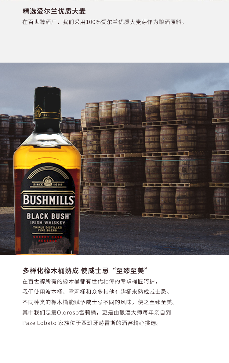 【行货】百世醇黑标爱尔兰威士忌洋酒 700ml*1瓶
