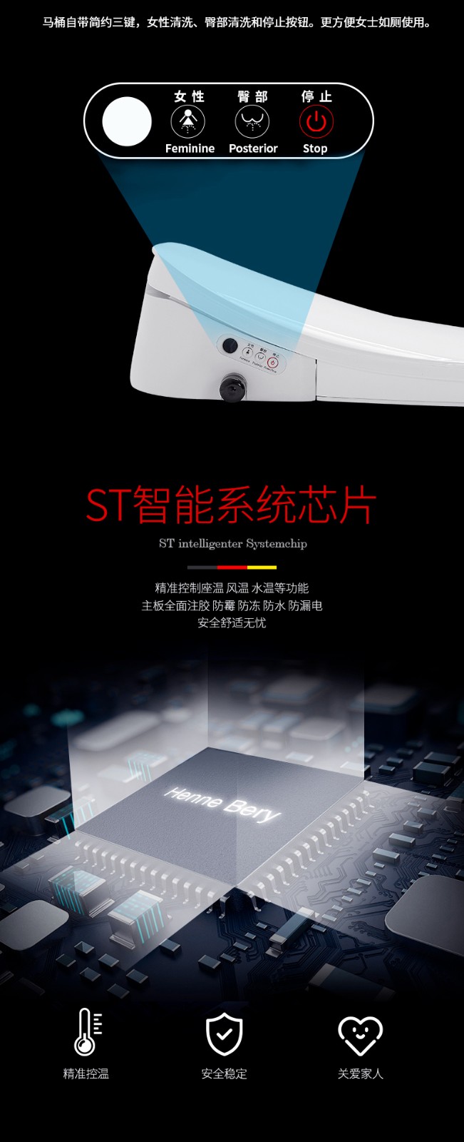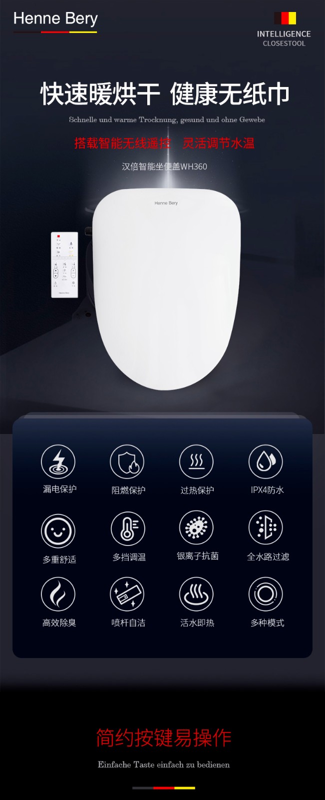 德国汉倍WH-360智能马桶盖无线遥控 即热式暖风款 无纸化速干