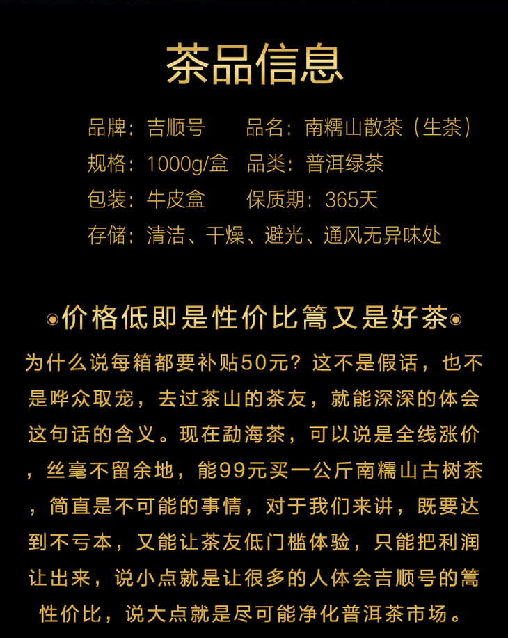 吉顺号《南糯山》散茶2024年春茶1000克/箱