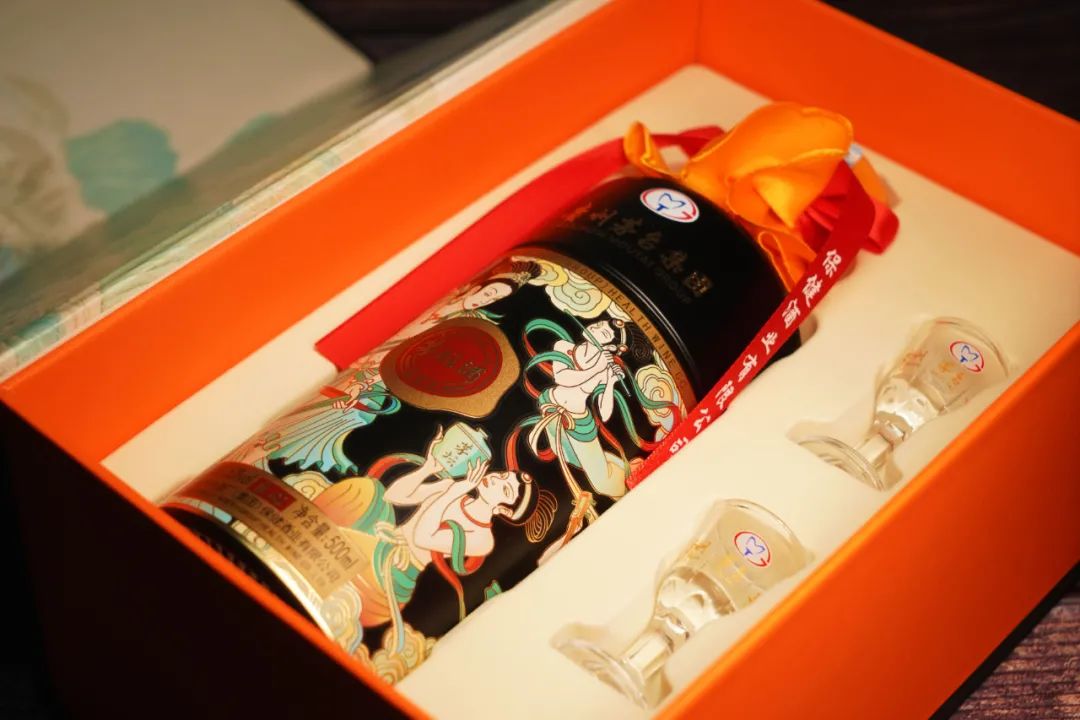 承袭独有瓶型,瓶身绘有敦煌壁画飞天仕女托杯图,绚丽夺目,古朴大气。