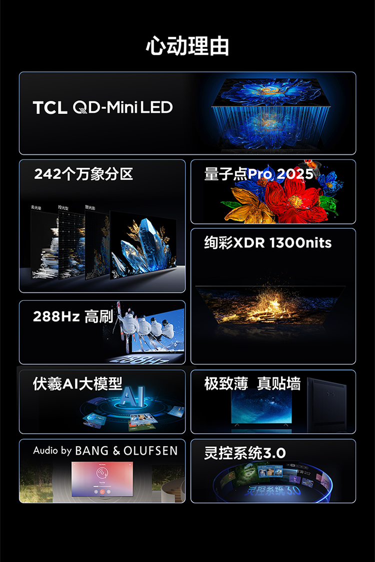 TCL电视 65P12K QD-Mini LED 242 个万象分区 绚彩XDR 1000nits Audio by Bang & Olufsen 65英寸