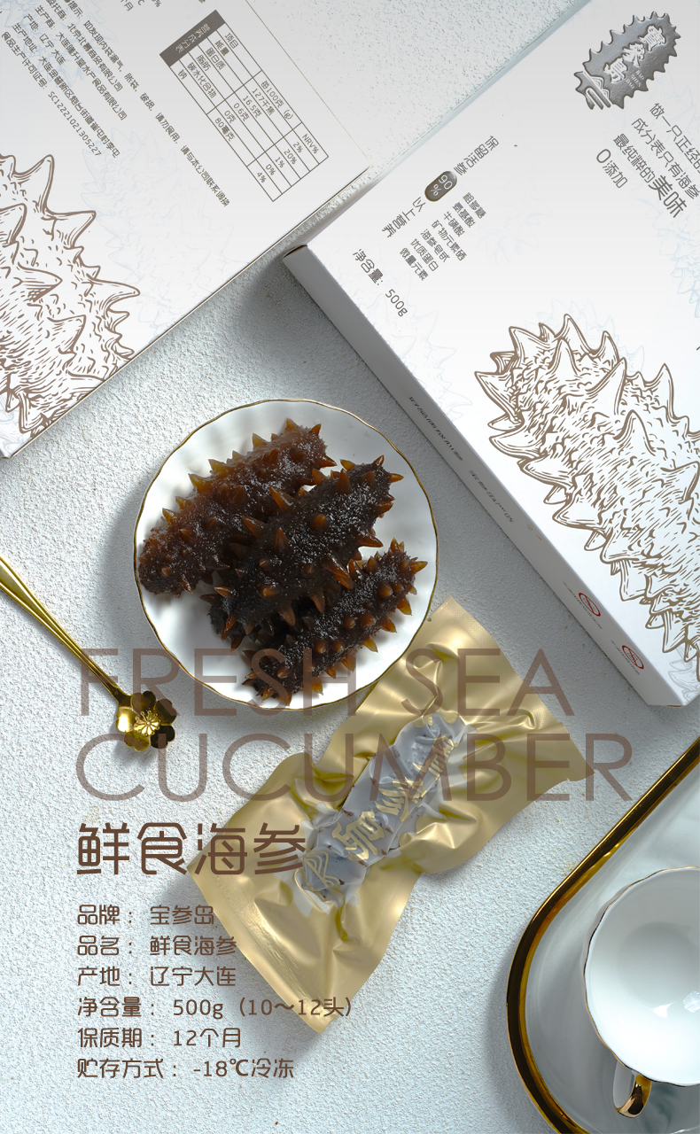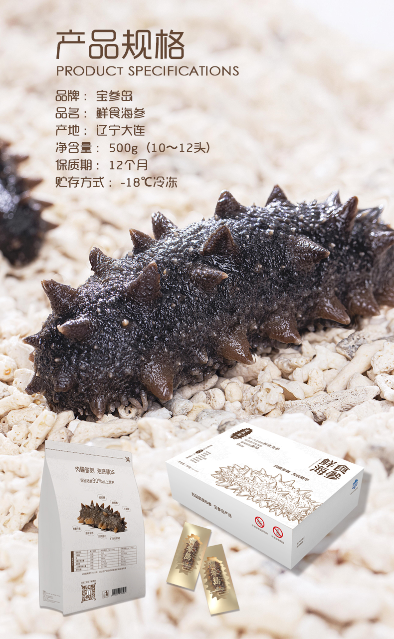 鲜食海参辽参大连海参6-7头/500g(7斤送3斤到手10斤)鲜爽Q弹滋补