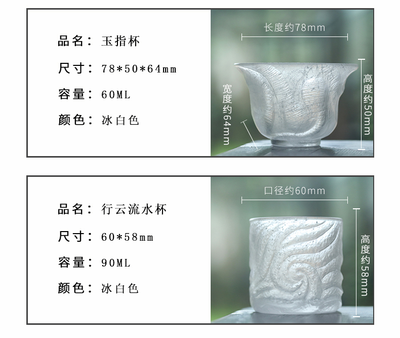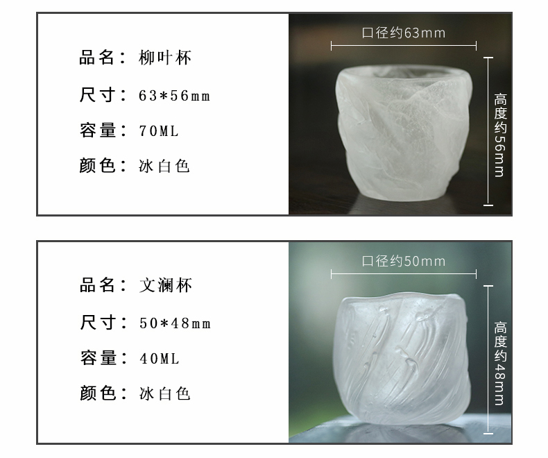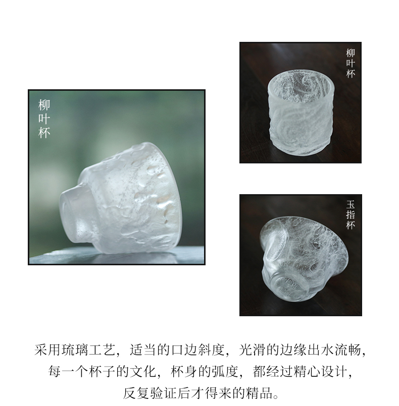 心缘堂冰冻烧【柳叶杯套装】琉璃品杯 家用耐热主人杯功夫茶具