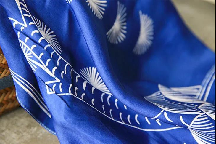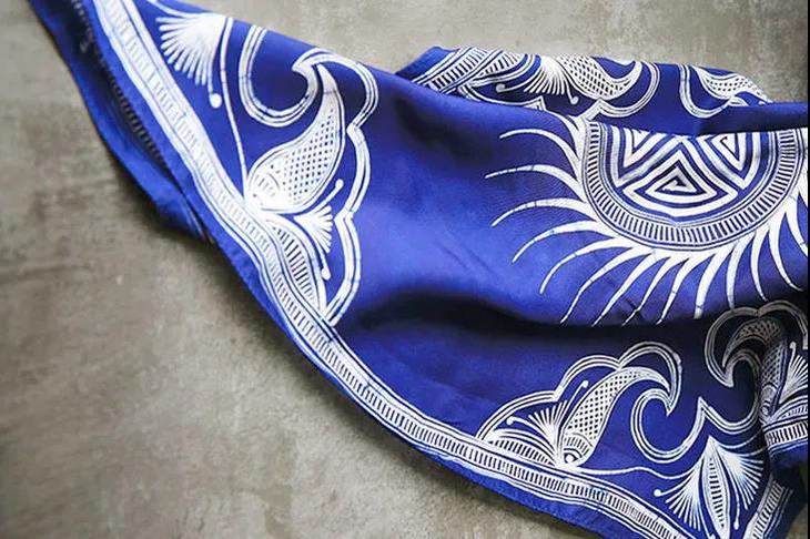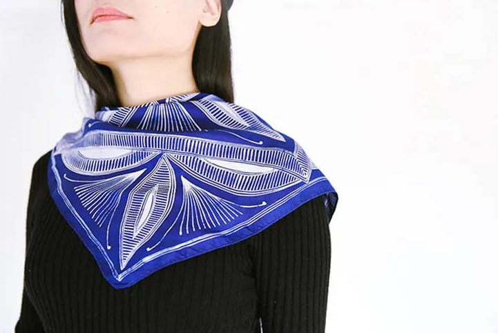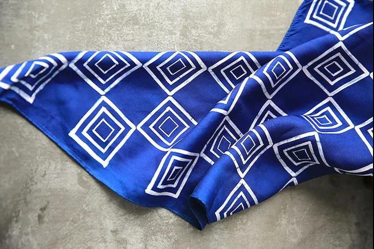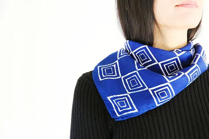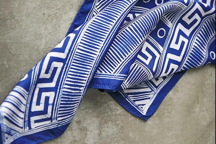 这款蜡染丝巾,选用纯正桑蚕丝,亲吻颈间的丝滑,会让人不自觉更加挺拔、有气质。