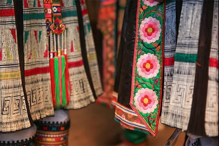 苗族妇女在每个重要场合,都会穿上绣有草木虫鱼纹样的大裙子,希望把美好祝愿揽于身。