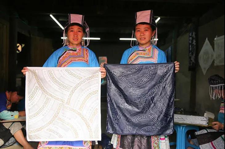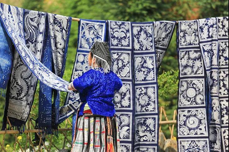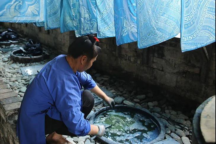 她们亲手染出这抹刚劲的苍蓝,一笔一划画出独属于苗岭的草木之美,传递出祝愿世人的心声。