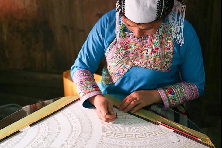 盎然生机,会让平淡的生活、爱情、婚姻等泛起涟漪,生出几分明媚之情。苗族手艺人便把这份活力藏入一个个飞舞灵动的图案中——