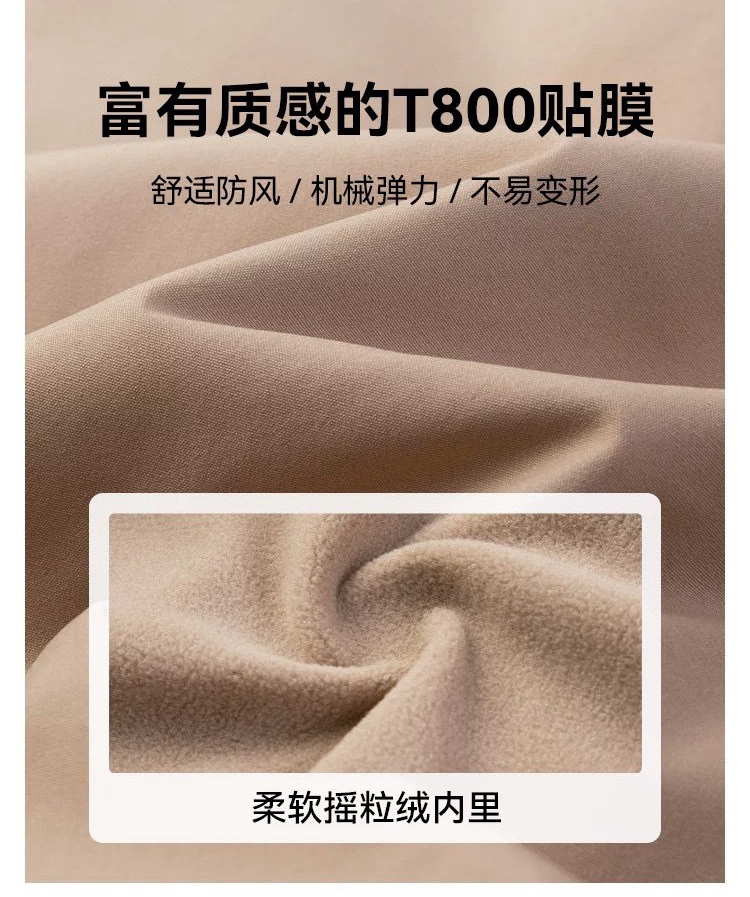 富有质感贴膜 T800斜纹原料带弹性,舒适防风/机械弹力/,不易变形,柔软摇粒绒内里。