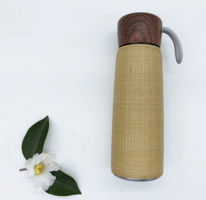 【老山翁】竹丝精编木纹提手保温杯原色热水瓶竹丝扣瓷304不锈钢 不锈保温壶