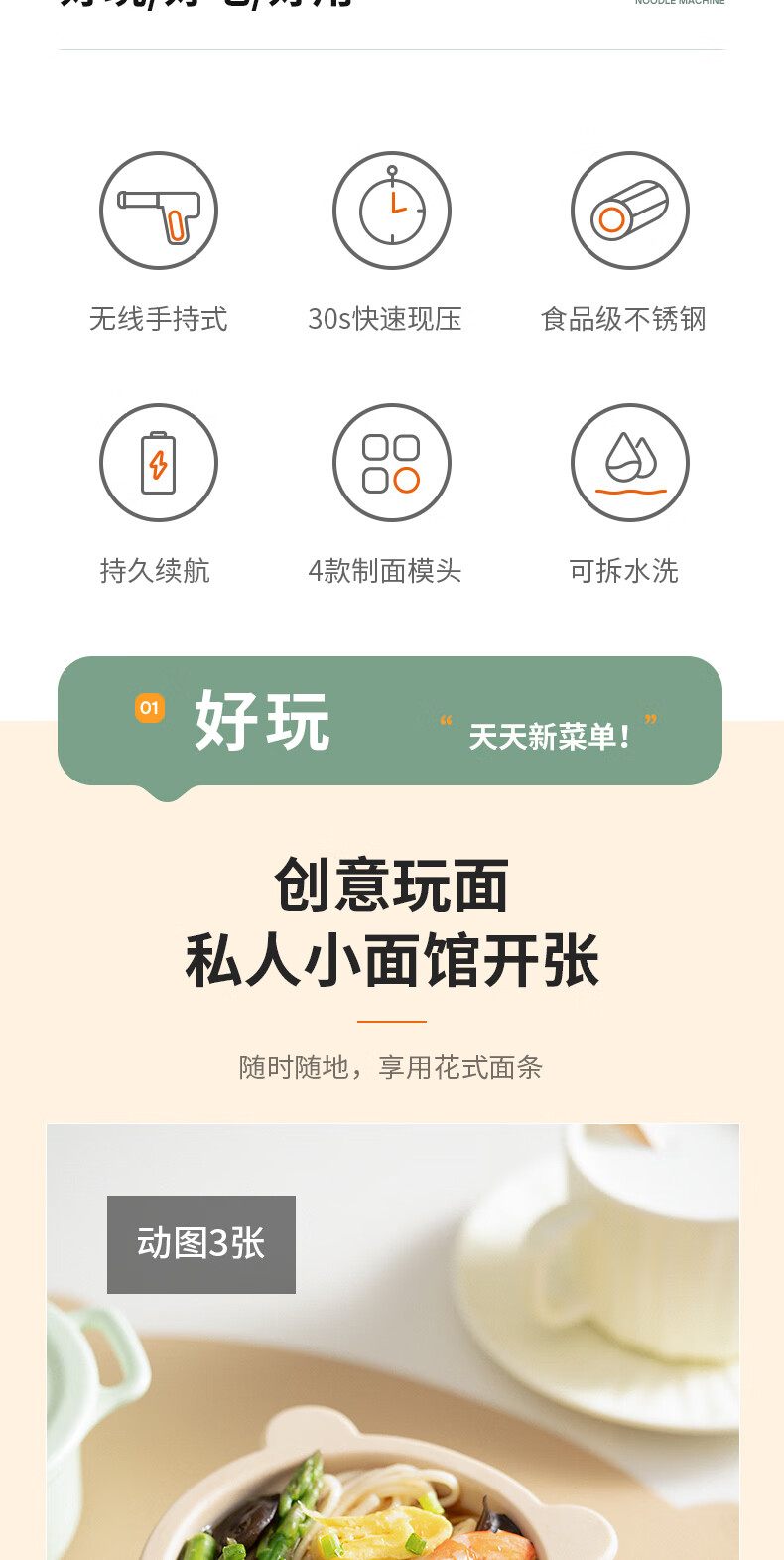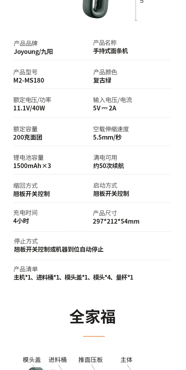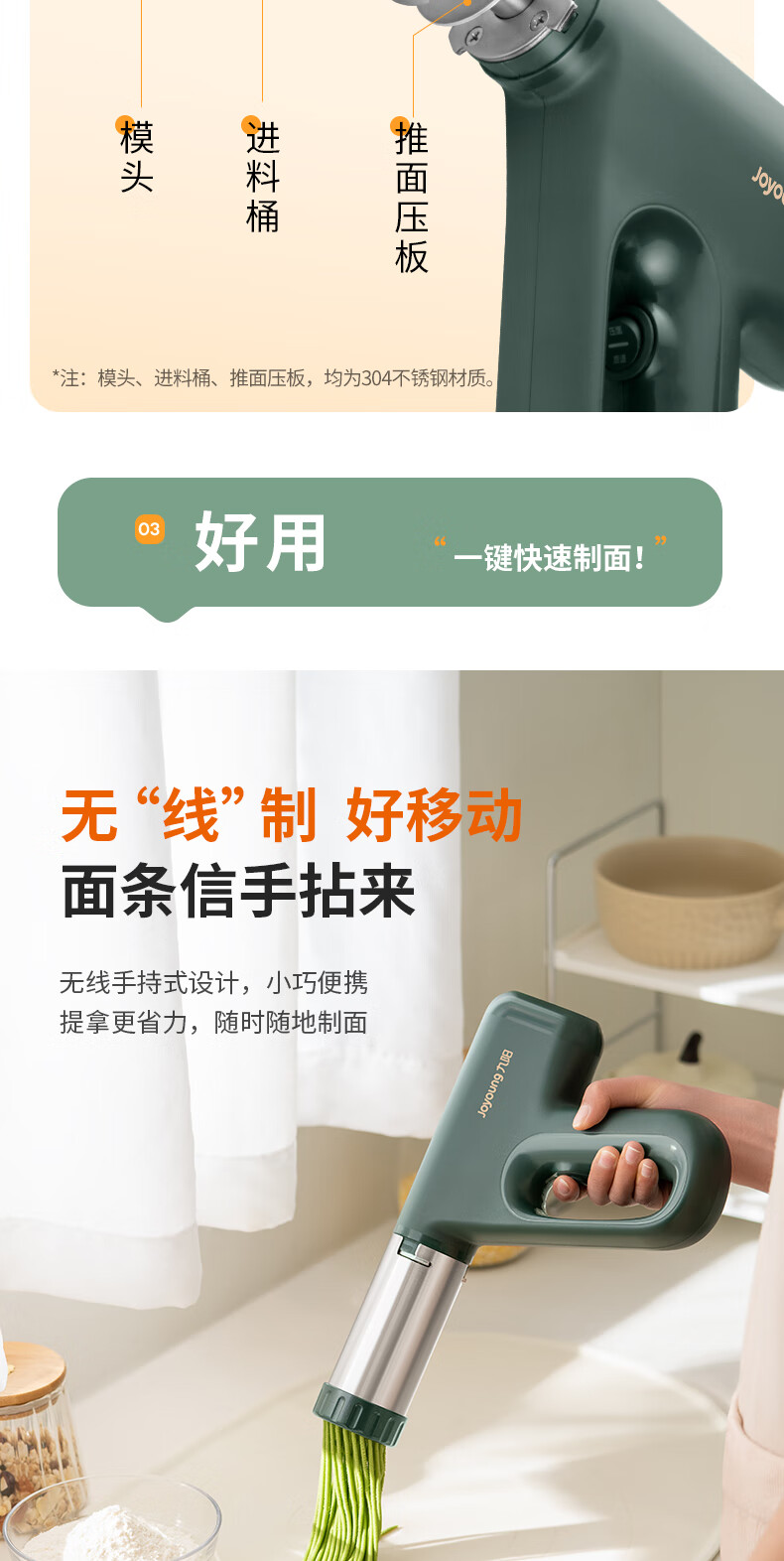 九阳充电式手持面条机面条枪家用自动压面机饸饹面机挤压面条神器
