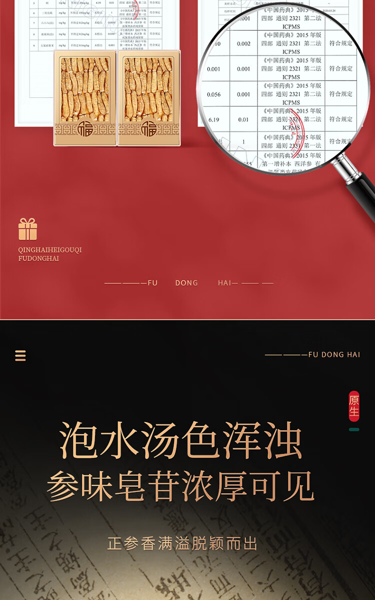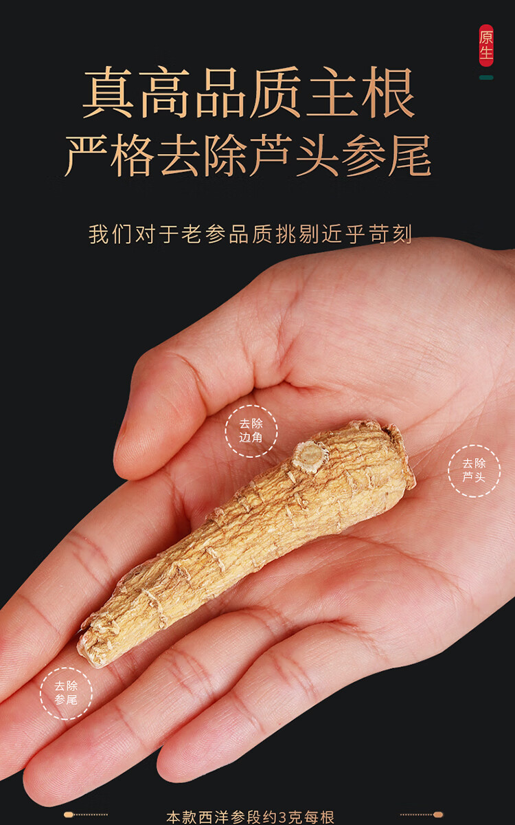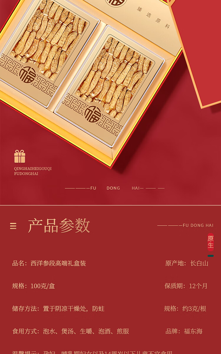 福东海 长白山3年西洋参段100克 花旗参短枝 人参皂苷片可打西 洋参粉送礼礼盒装