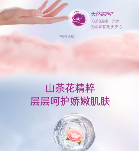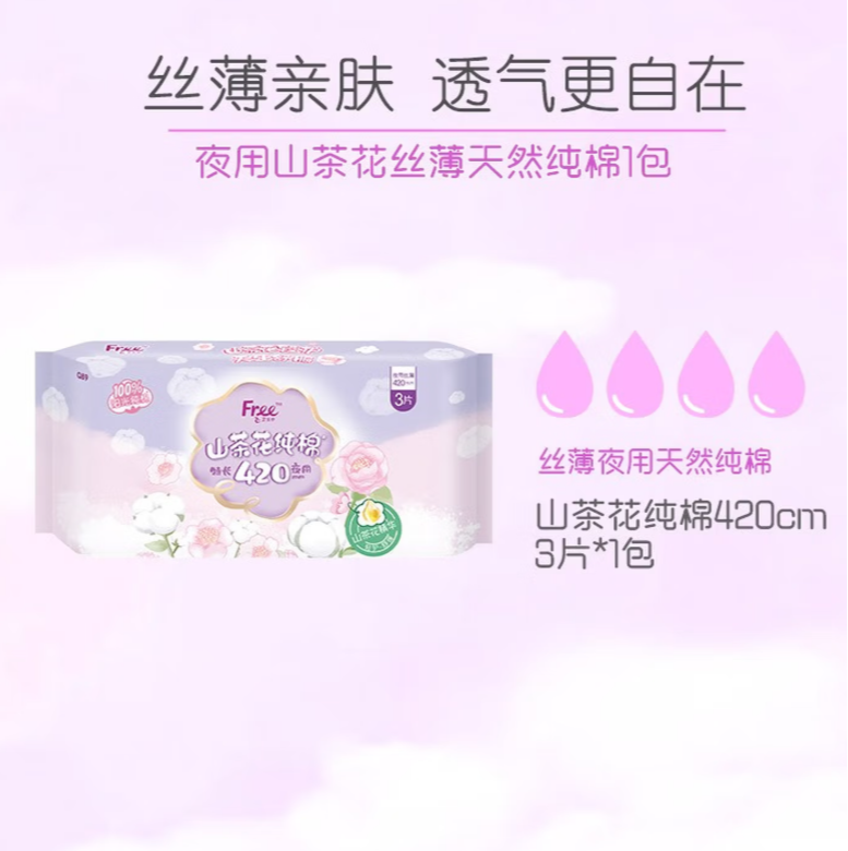 Free飞 山茶花精华纯棉特长夜用420mm卫生巾(Q89) 3片