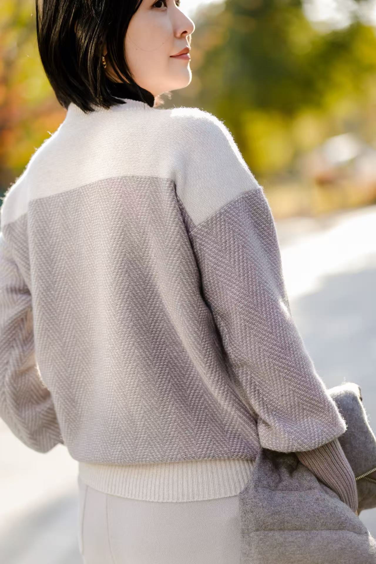 本季采用了低饱和度,融入大量灰白的淡紫色纱线,低调别致。营造出朦胧、舒缓、静谧的怀旧氛围。