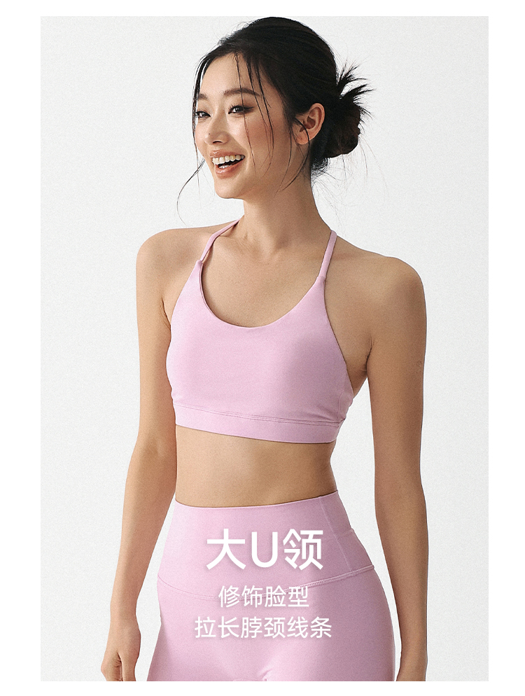 跃牌(呗咪纷纷系列)夏季裸感美背运动内衣女防下垂聚拢挂脖文胸胸垫一体健身瑜伽上衣WX14111