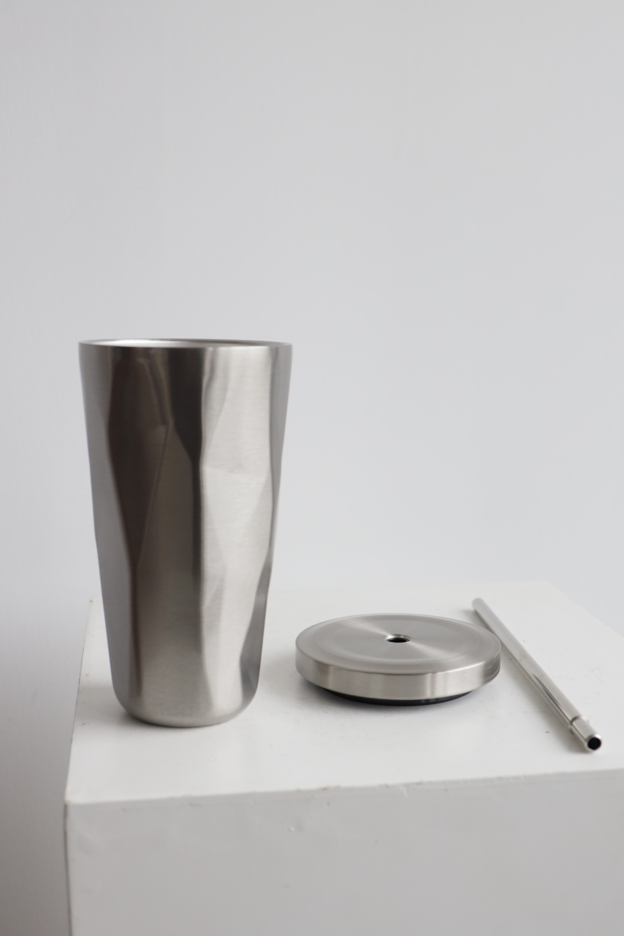 T.S.L 不锈钢不规则带吸管双层咖啡杯车载随行杯(473ml)