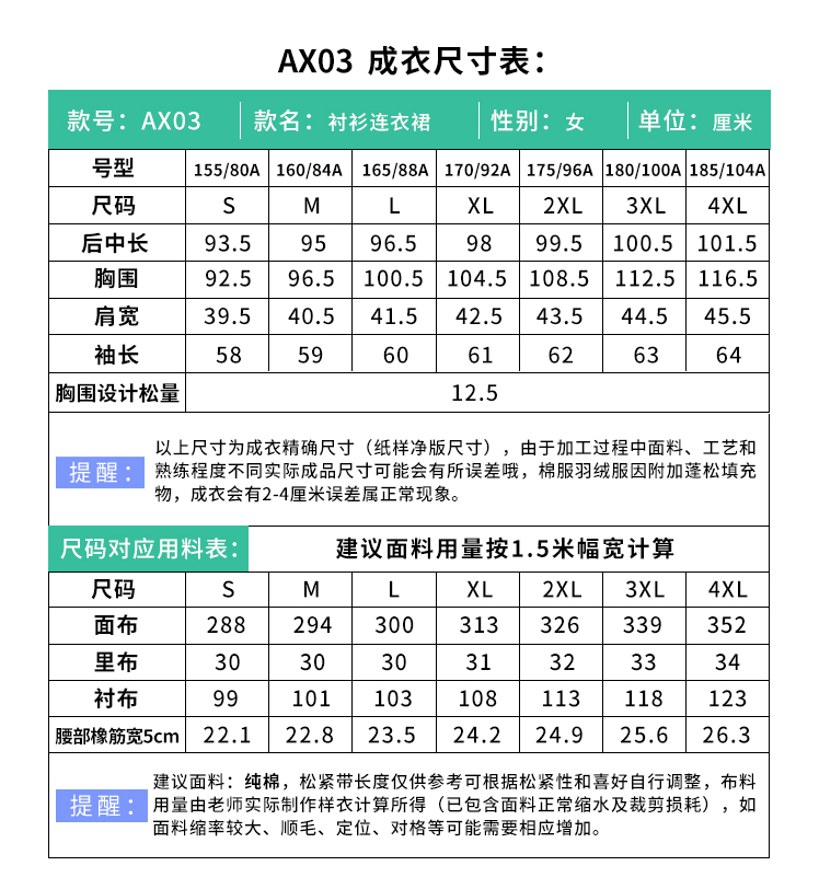 裁缝学苑AX03 长袖衬衫连衣裙纸样女装2022新款收腰服装衣服打板