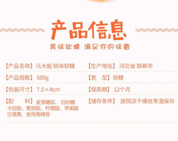 【食品酒水】马大姐桔子软糖儿童零食休闲糖果500g