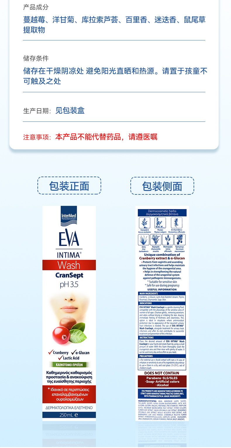 EVA蔓越莓女性私处洗护液 250ml*1瓶