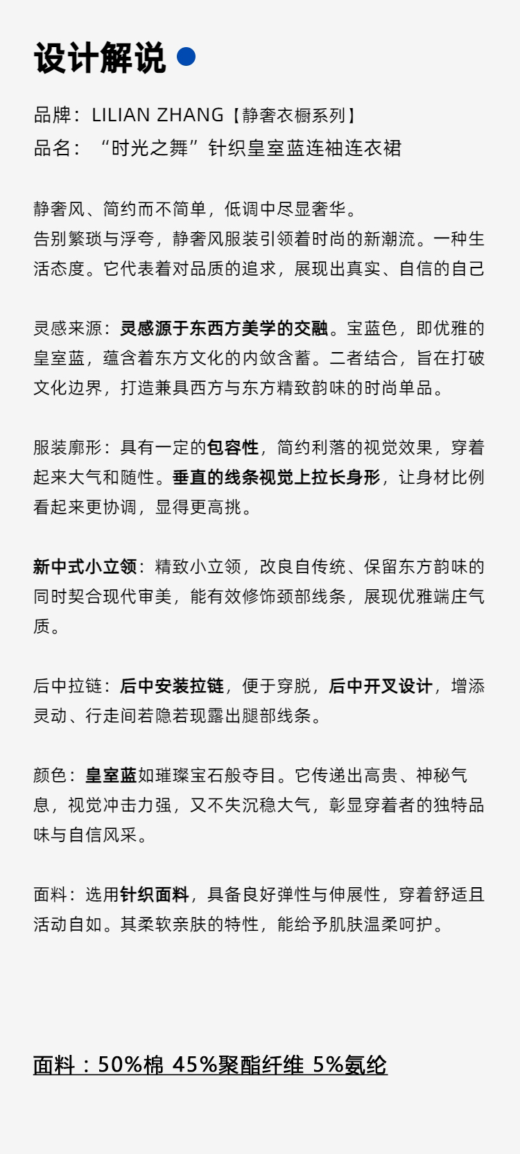 E定制-静奢风-“时光之舞”针织皇室蓝连袖圆领时尚连衣裙 2501063