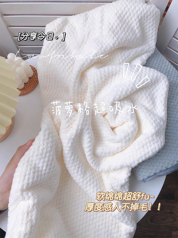 三件套【毛巾+浴巾+干发帽】珊瑚绒菠萝格浴巾 包边柔软吸水 家用洗澡巾套装