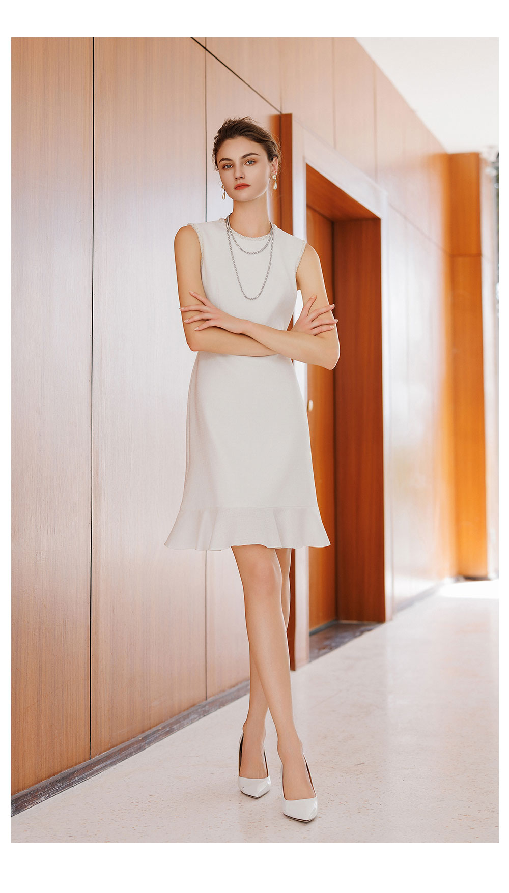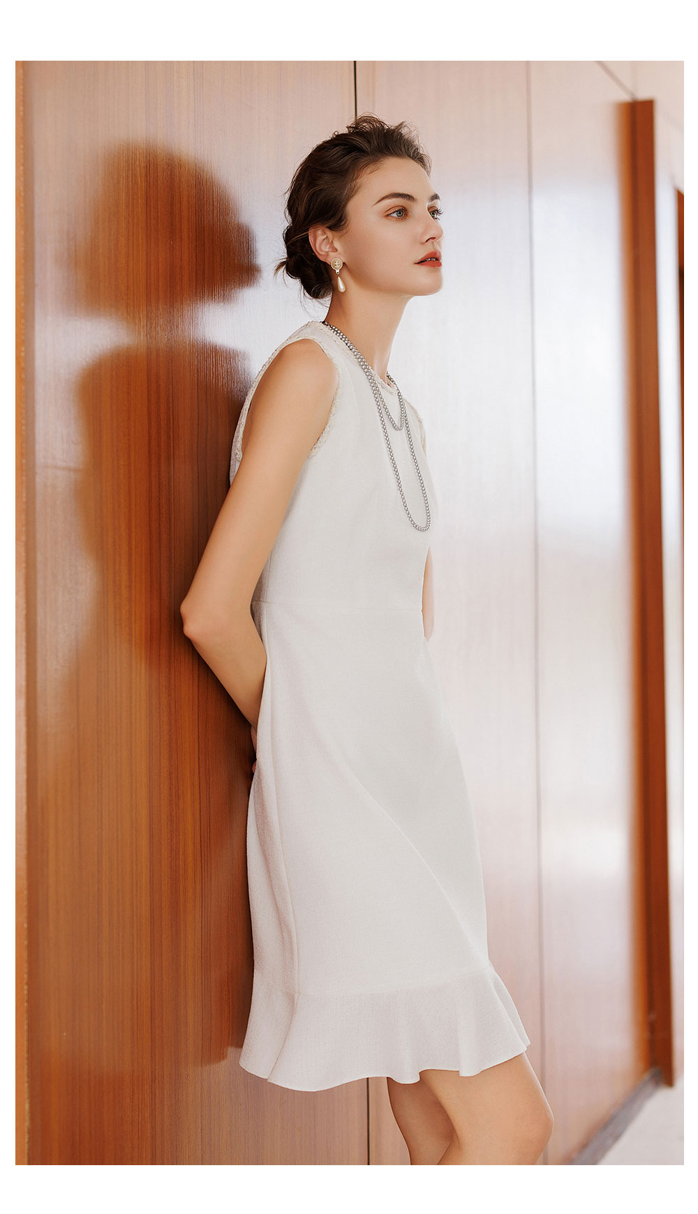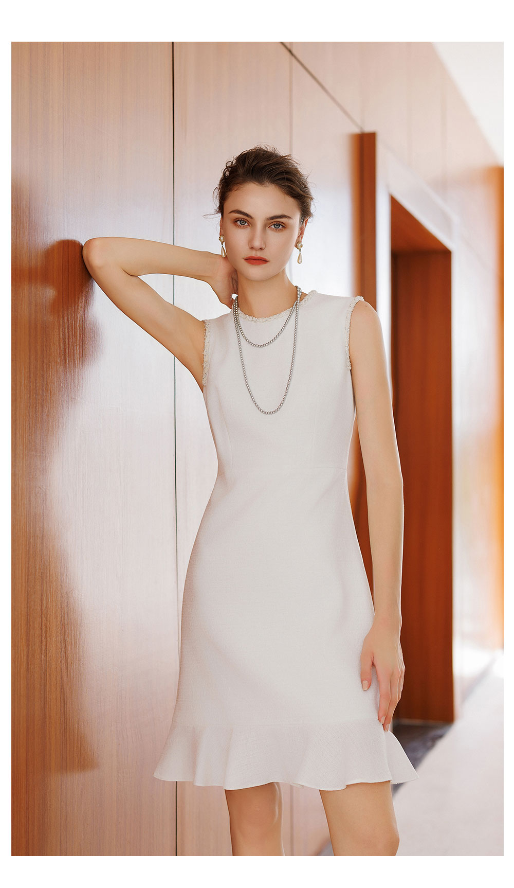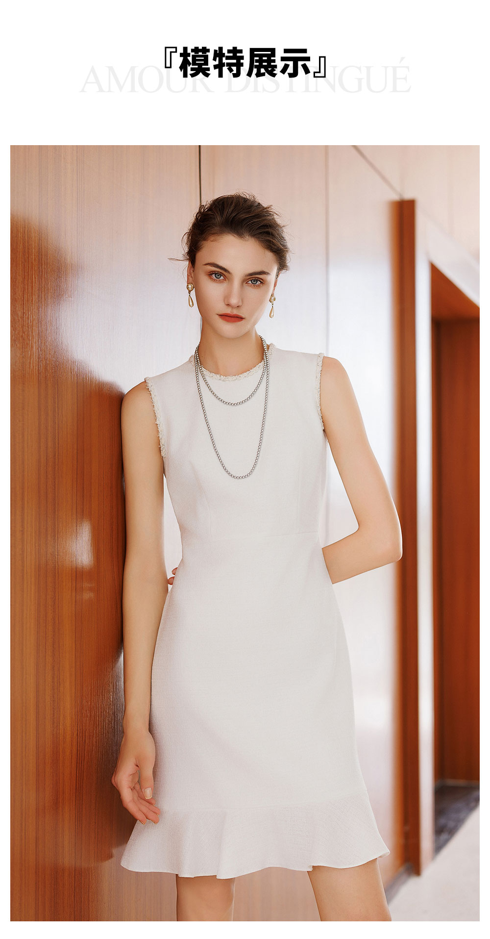 AD巨好看的早秋连衣裙2025新款无袖内搭粗花呢接拼雪纺荷叶边裙子