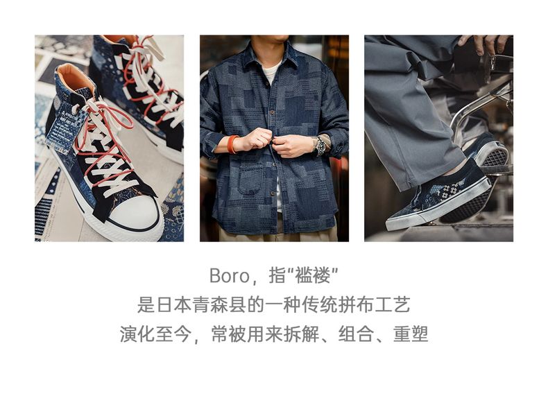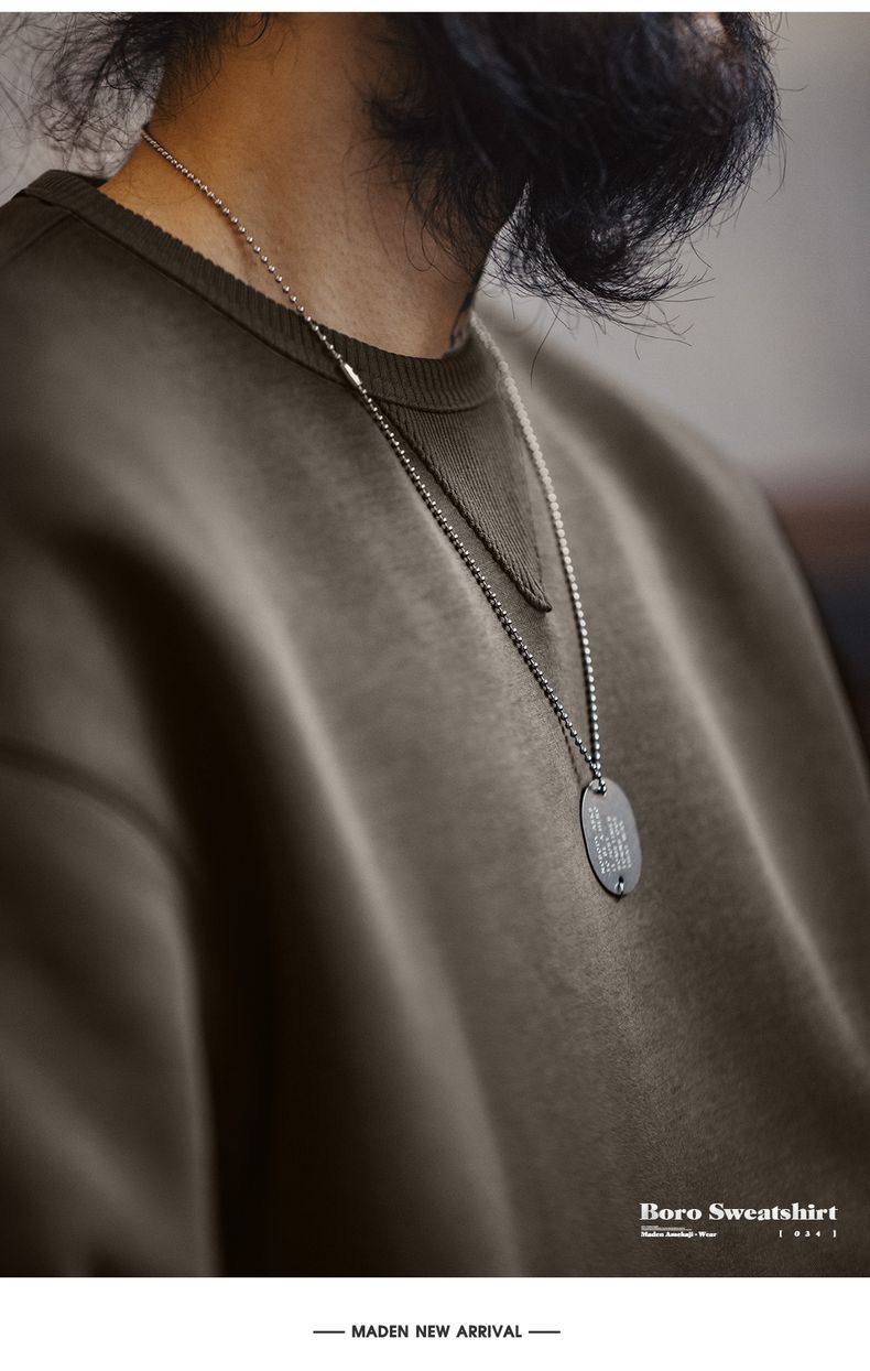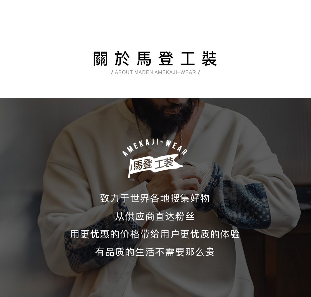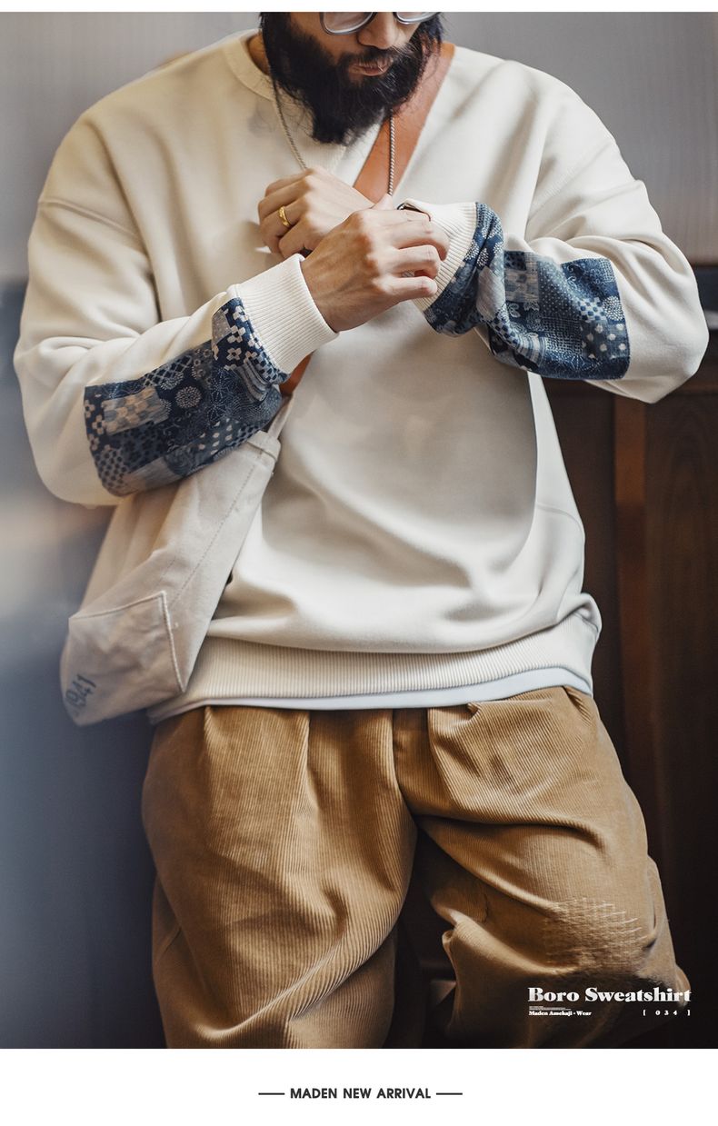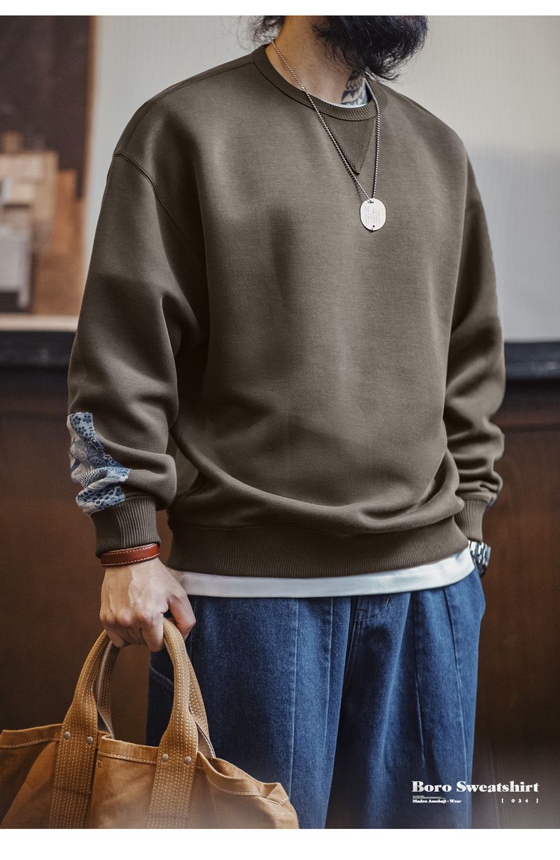 工装优选日系复古百家布拼接卫衣boro风休闲上衣圆领套头衫男春季
