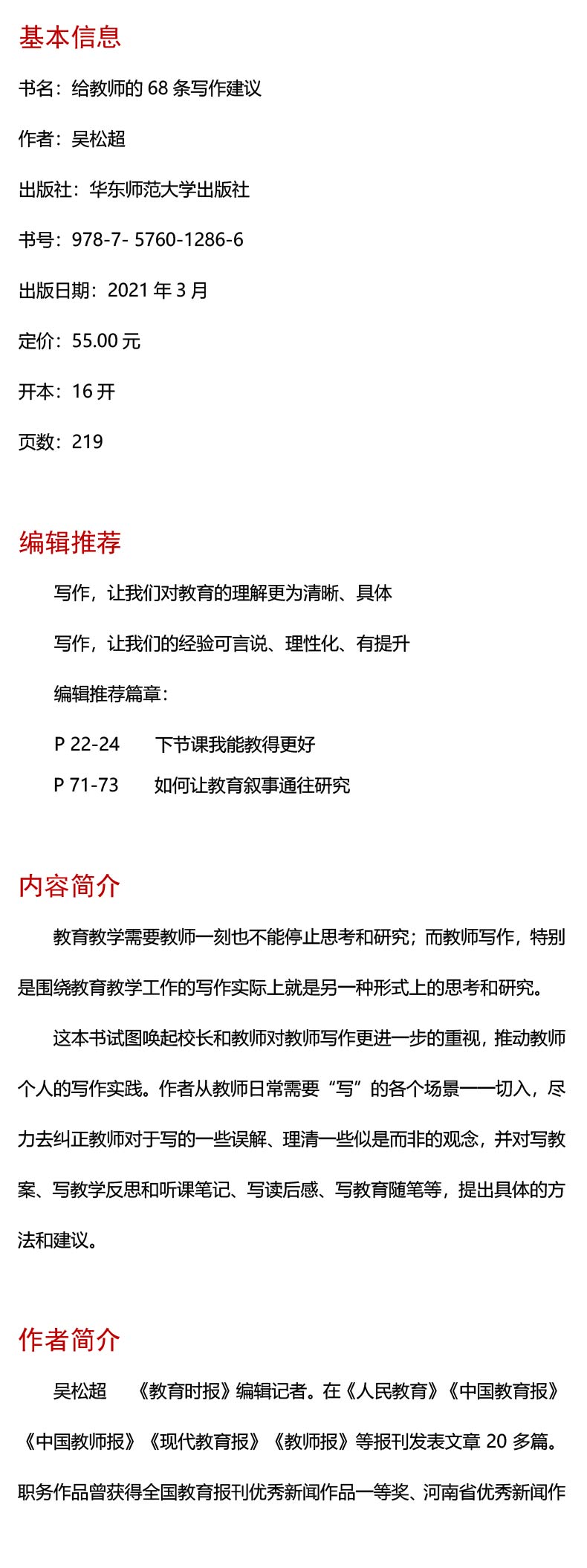 给教师的68条写作建议 大夏书系 教师写作指导 吴松超著