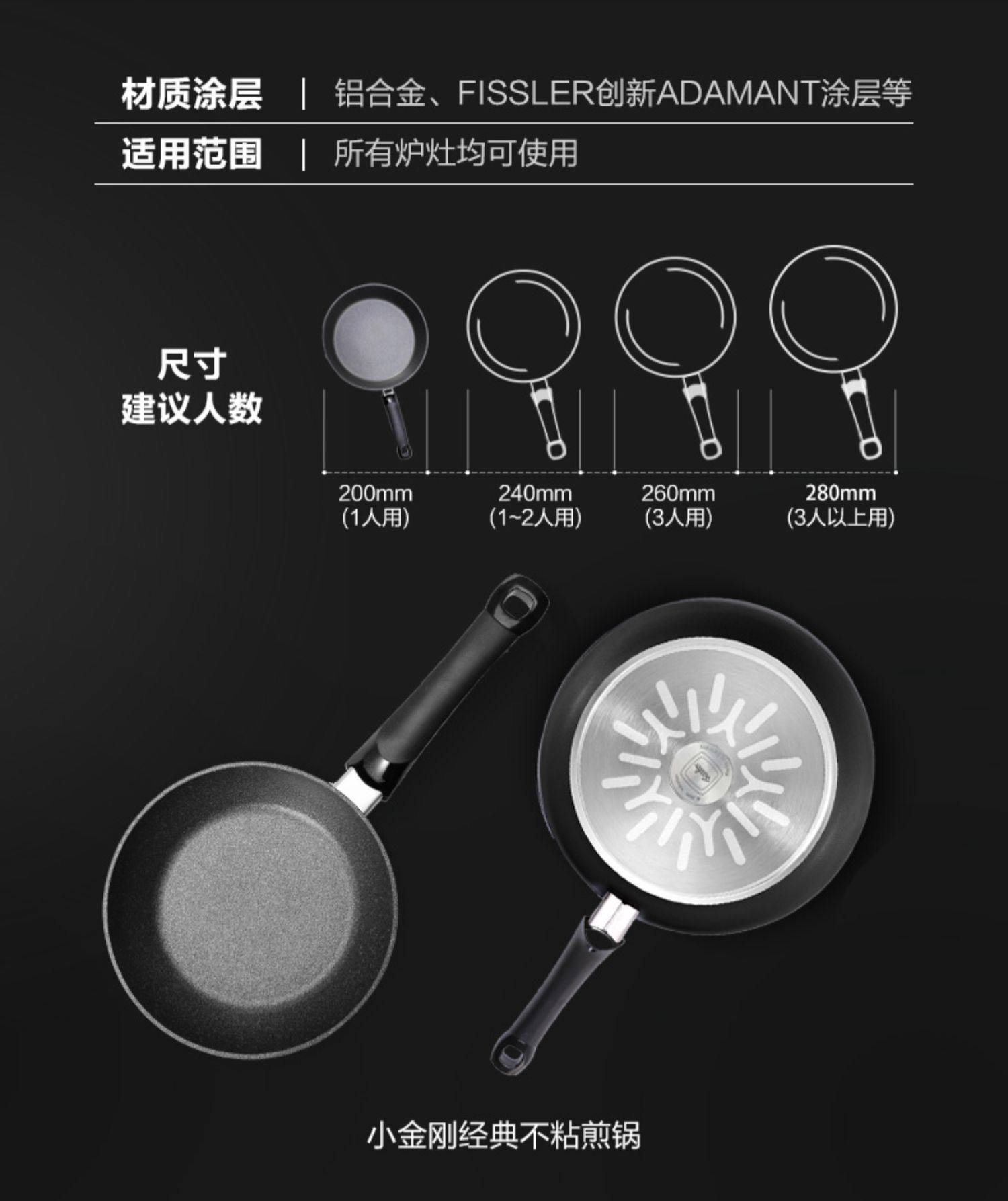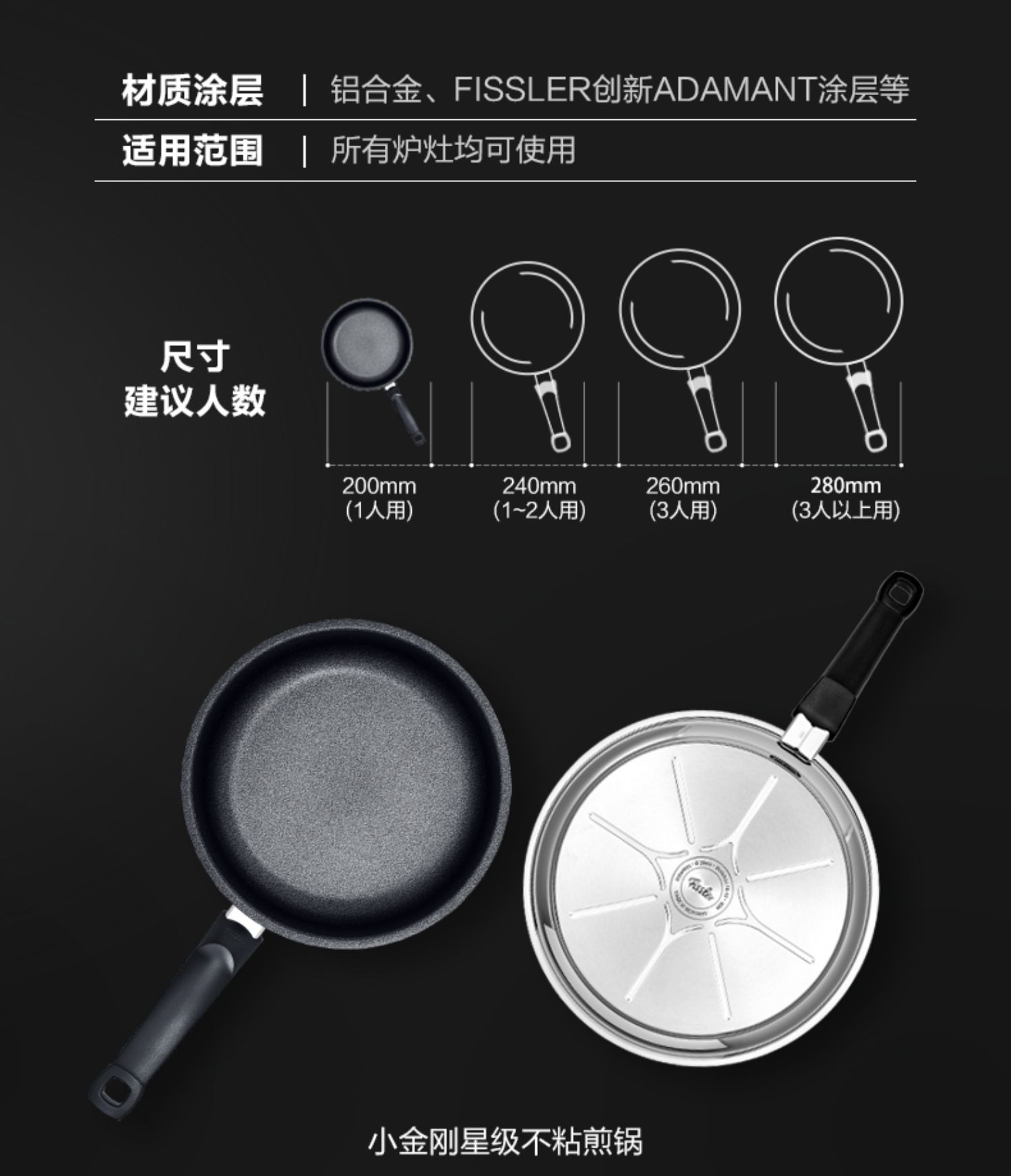 德国菲仕乐进口小金刚不粘锅平底锅家用煎锅烙饼煎蛋耐磨锅电磁炉