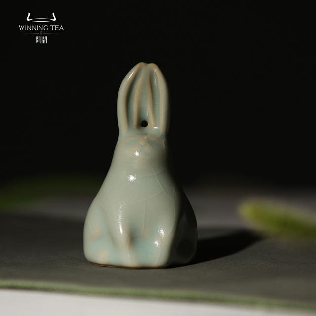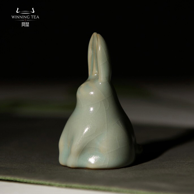 问鼎汝瓷天青立兔茶宠