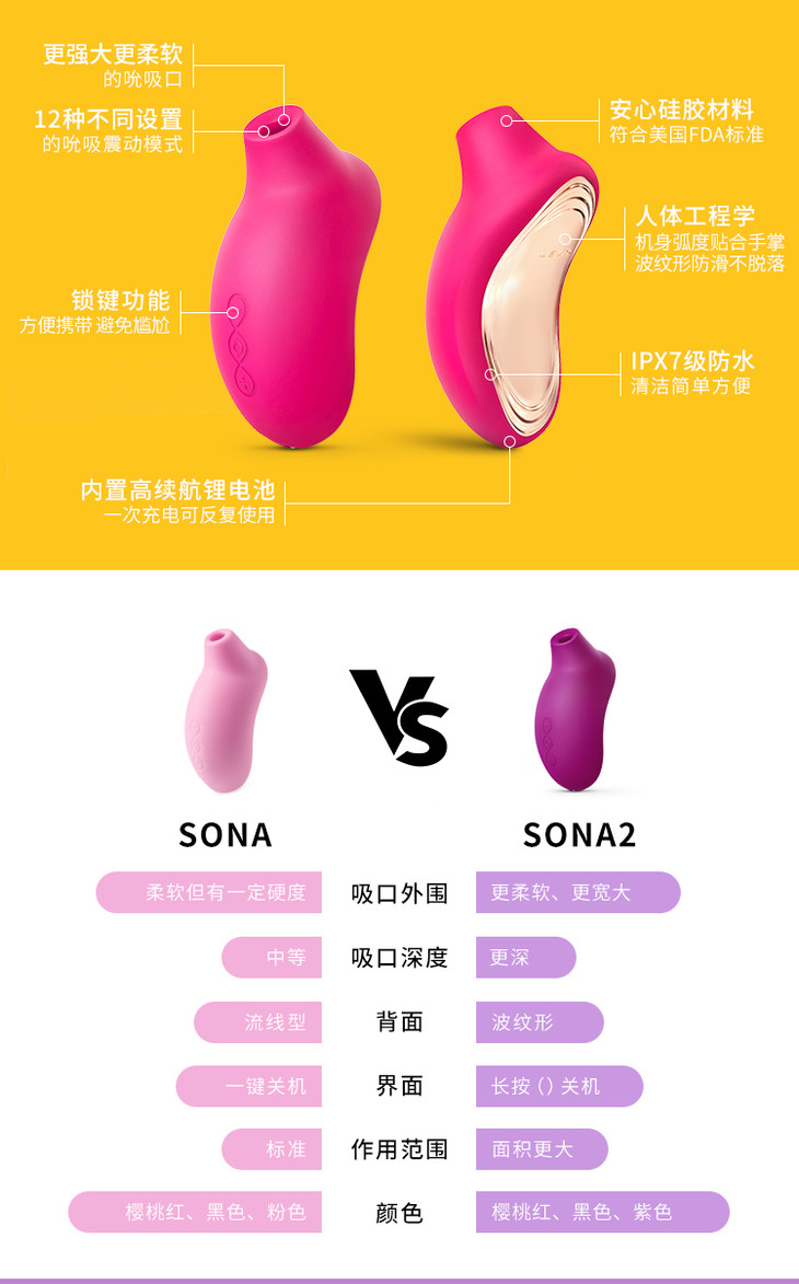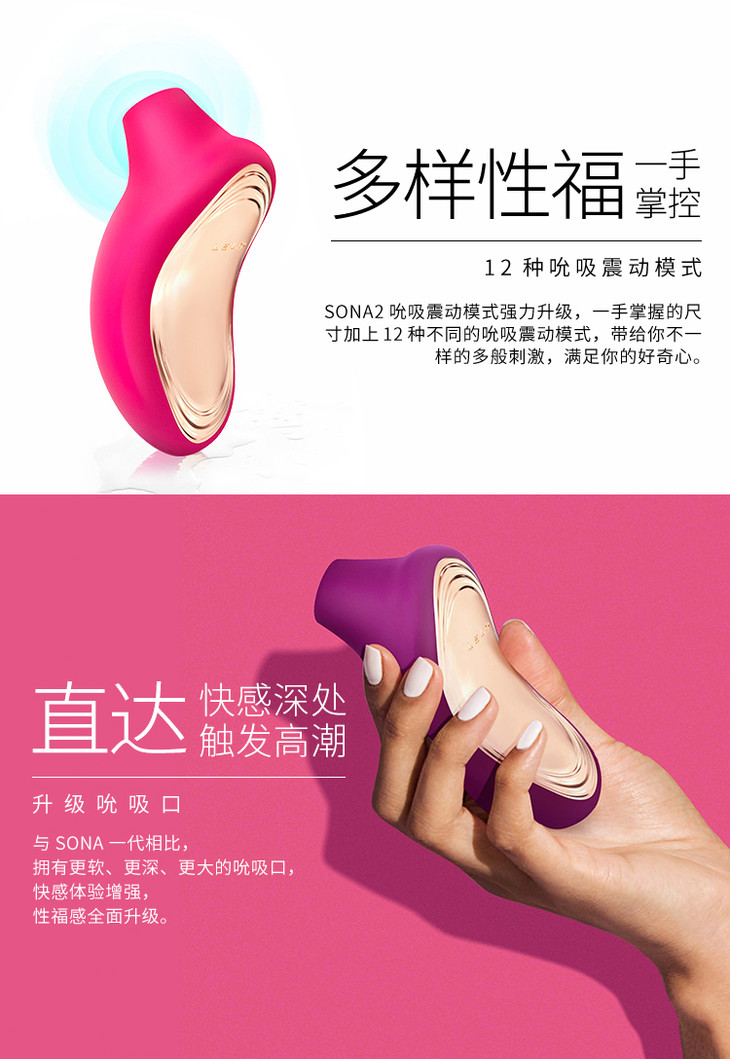 索娜2代压力增强版:增强版的索娜在用力按压身体时,马达工作的动力不变,还是会正常运作,身体所感受的吮吸感不会减少,按摩强度的表现也有持续刺激的保证哦。